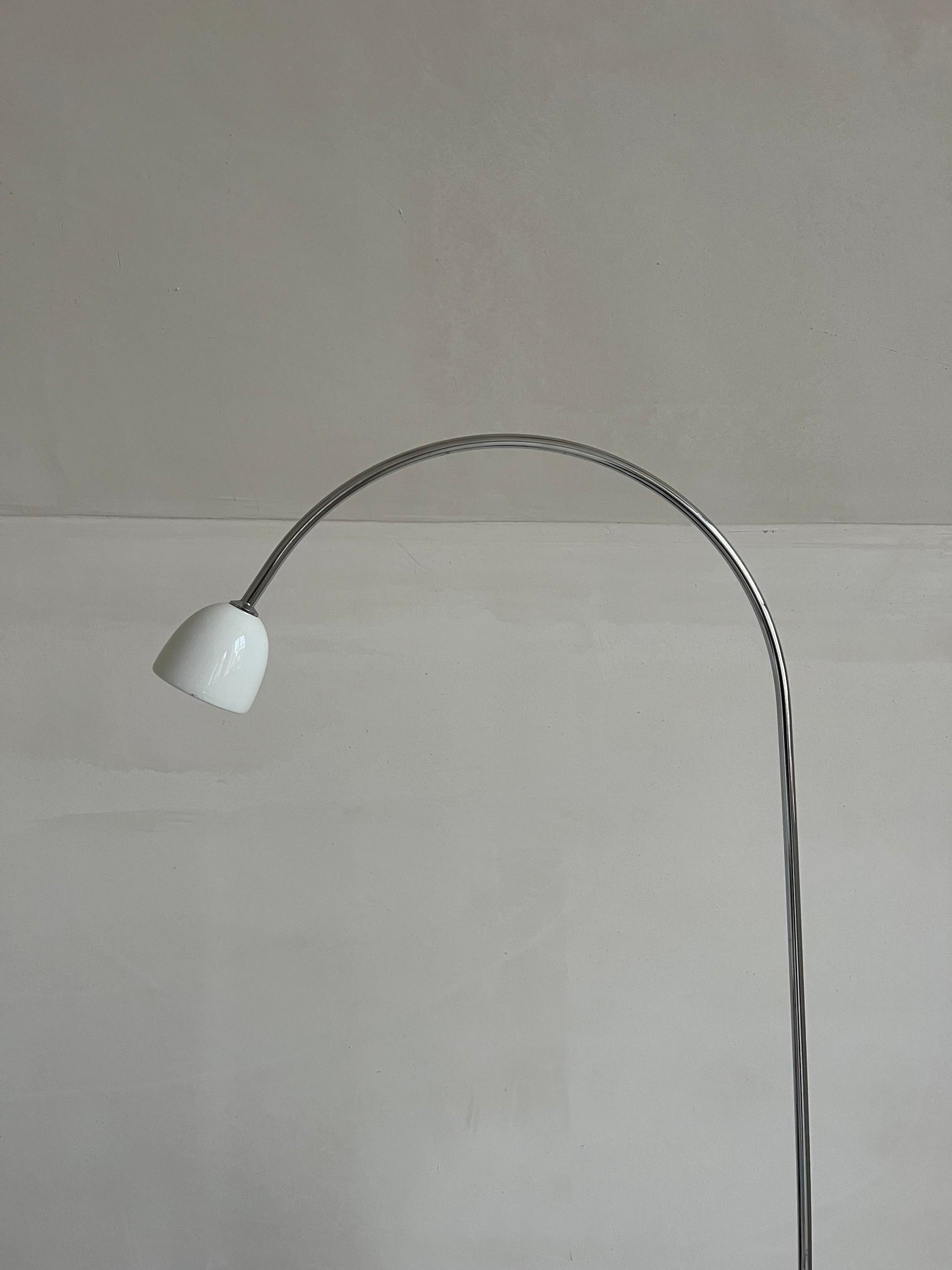 Sophisticated minimalistic arched floorlamp by Habitat with a porcelan shade.