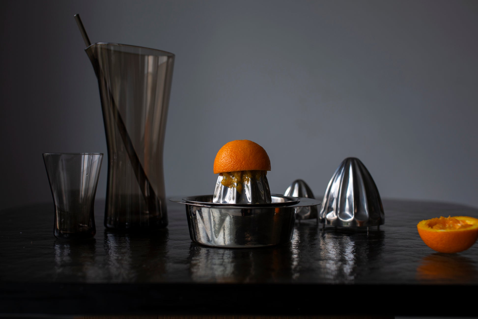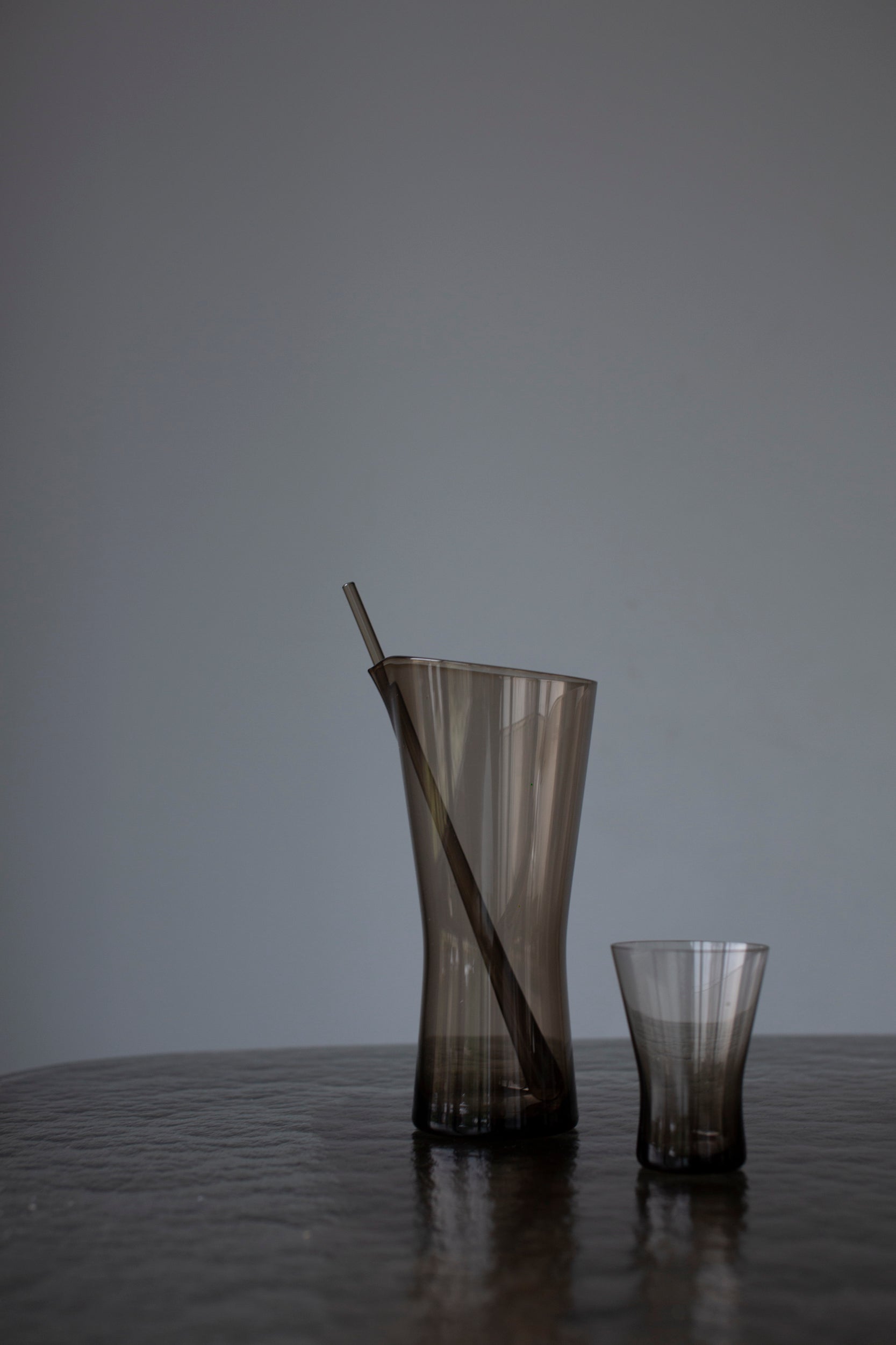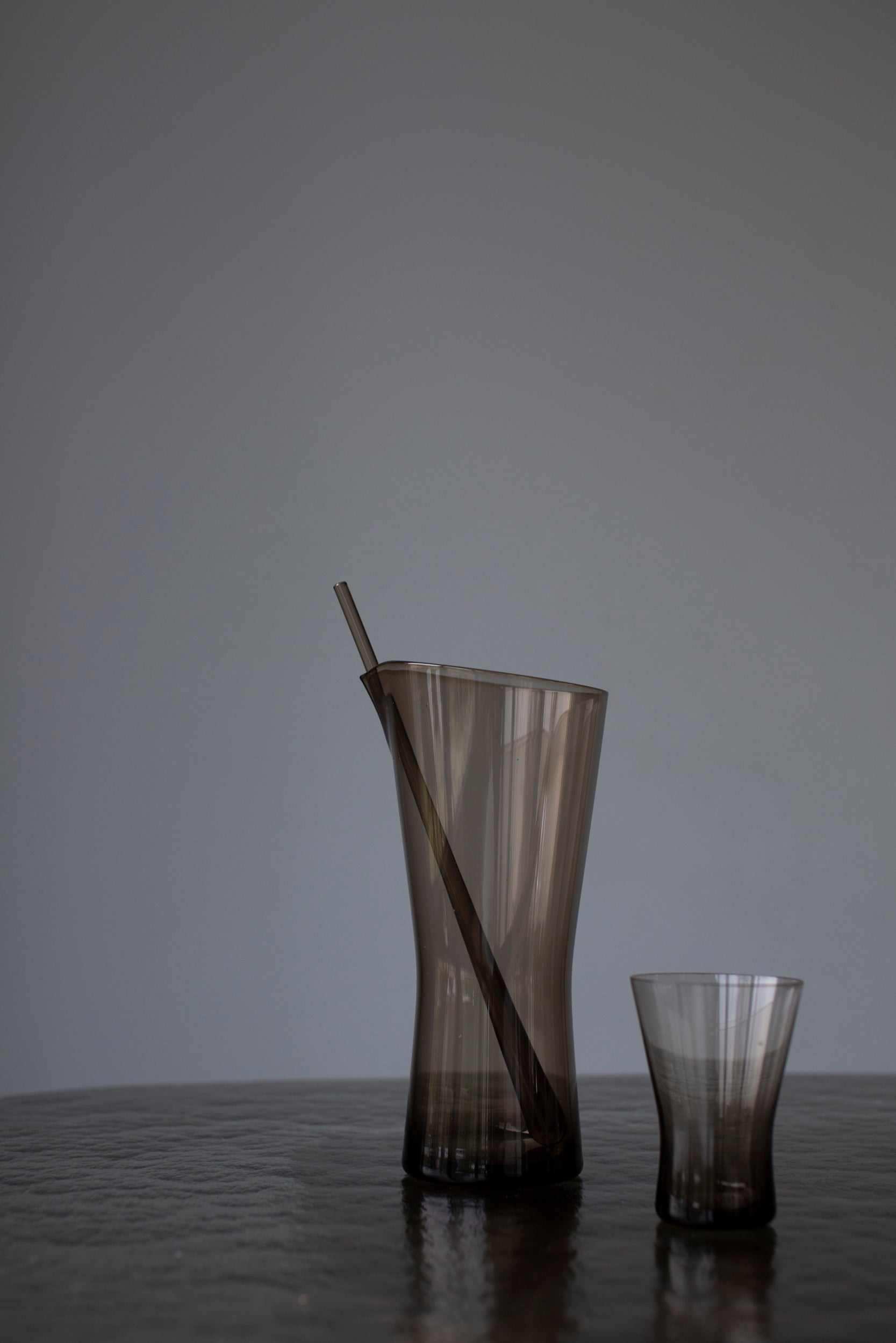 Introducing the exquisite Juice Can Smoked Glass by Henry Loffelhardt from the 60's. Crafted with premium smoked glass, this timeless piece is a true work of art that will elevate any table setting. Enjoy your favorite juice in style with this luxurious and exclusive design.