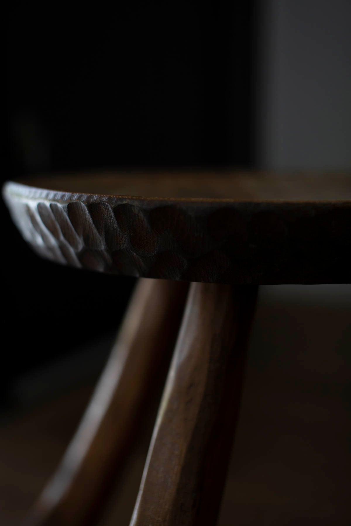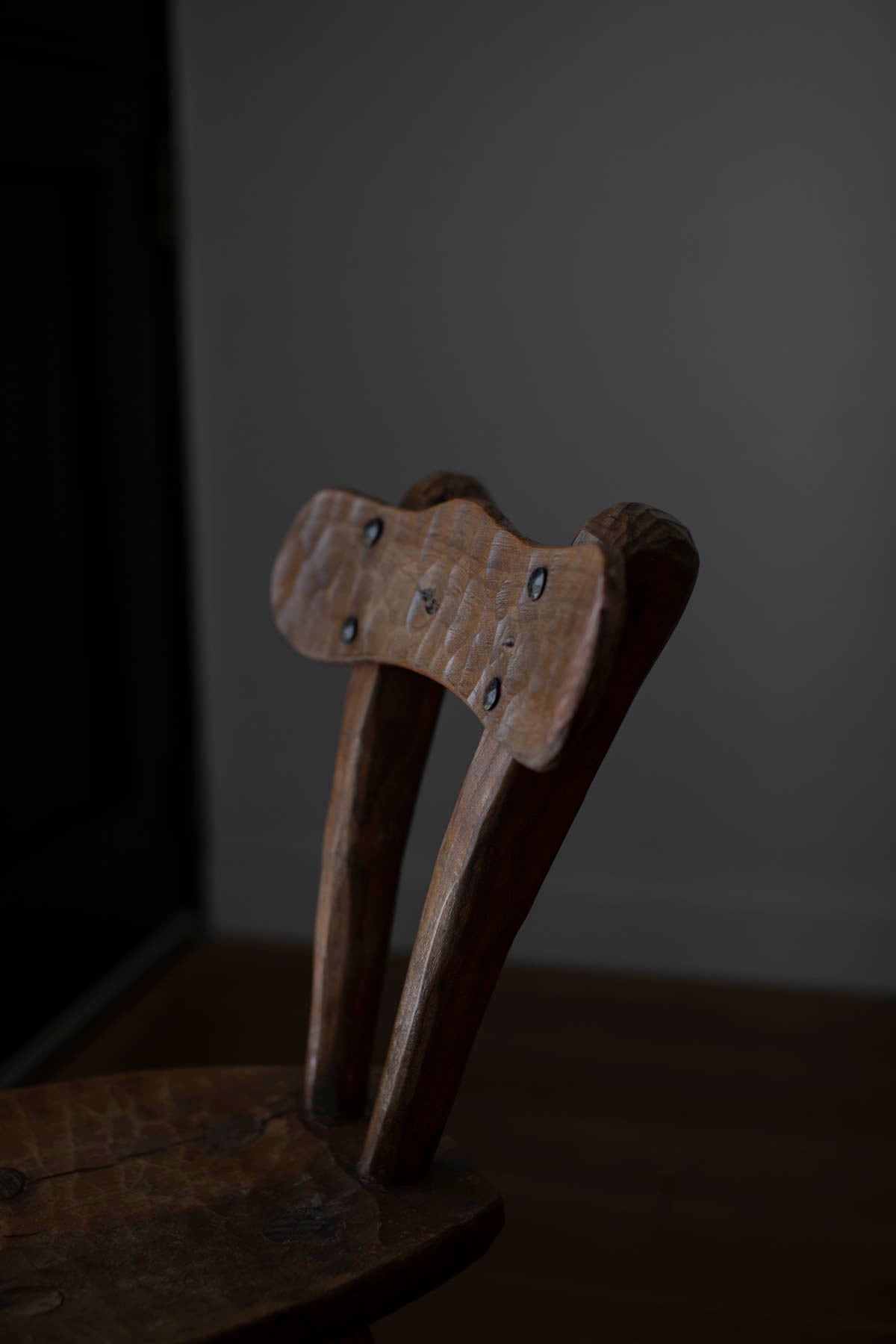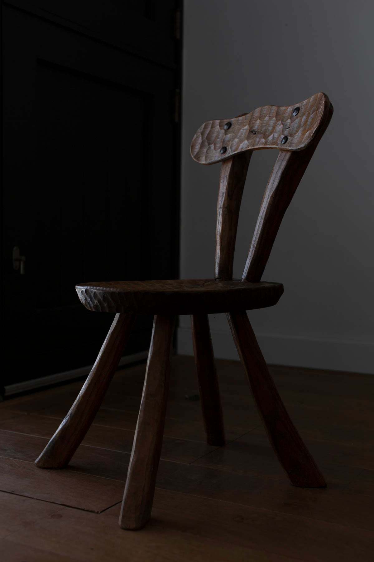 French brutalist carved oak chairs often feature bold, geometric shapes and intricate, hand-carved details. The natural grain and texture of the oak is often left unvarnished, giving the chairs a rugged, organic feel. Some designs also incorporate other materials such as leather or woven textiles to add contrast and texture.