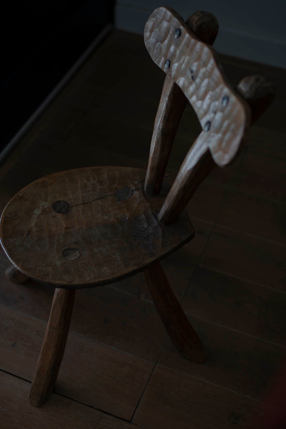 Brutalist carved oak chairs from France are a type of furniture that originated in the mid-20th century. They are known for their bold, sculptural forms and use of rough, unpolished materials such as raw wood and metal.