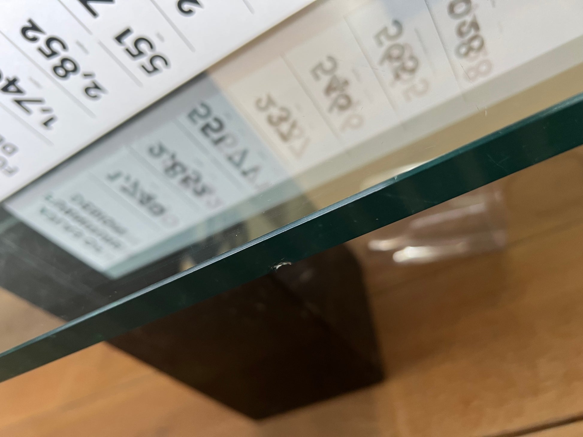 Please note: minor damage to the glass table top as shown on the pictures further more small traces of use which are appropriate for the age of the item.