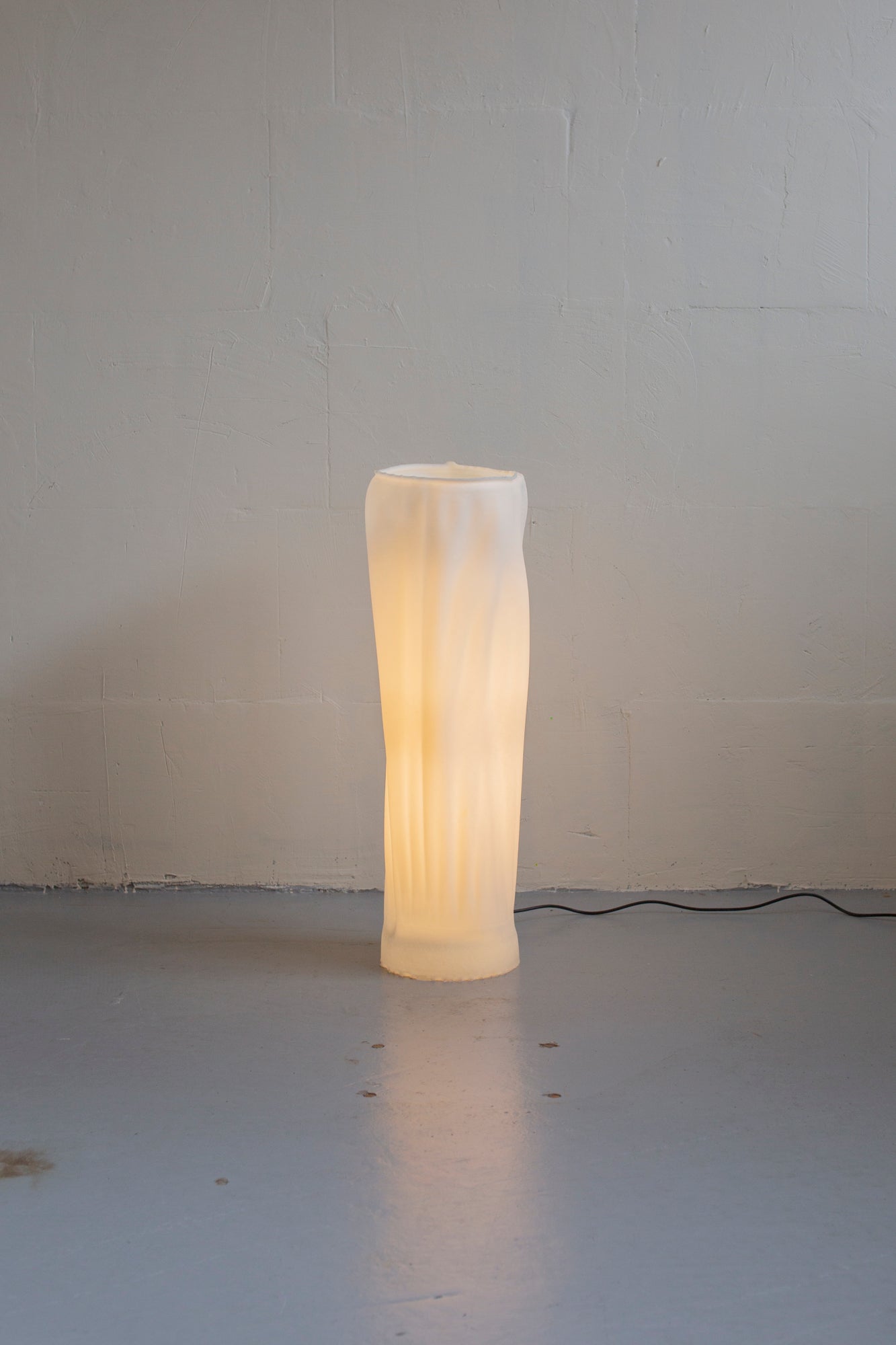 This sculptural floor lamp is a unique, one-of-a-kind piece, created from a leftover mold originating from an industrial production process. The original form was never intended as a lamp, which makes its transformation into a functional light object especially intriguing.
