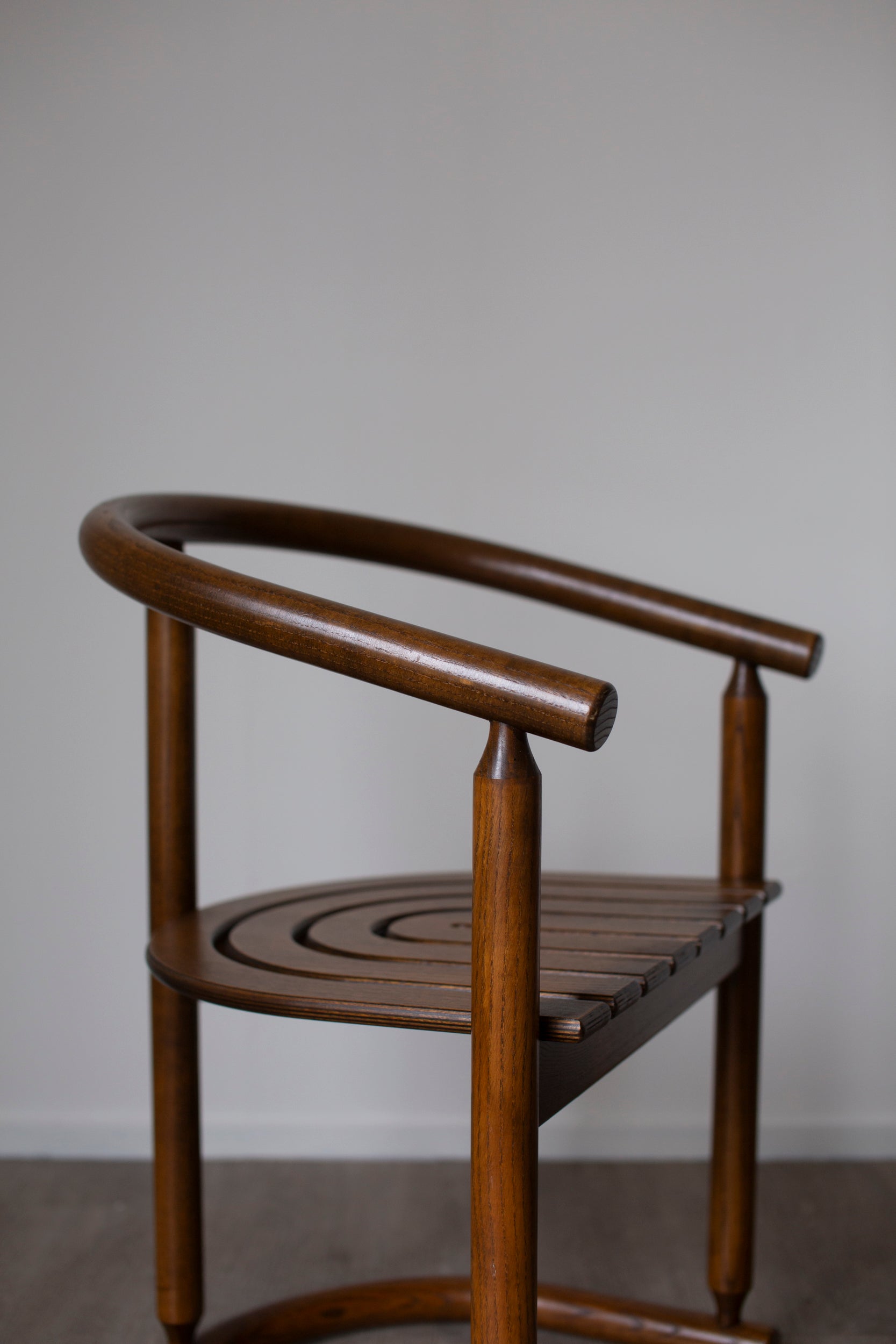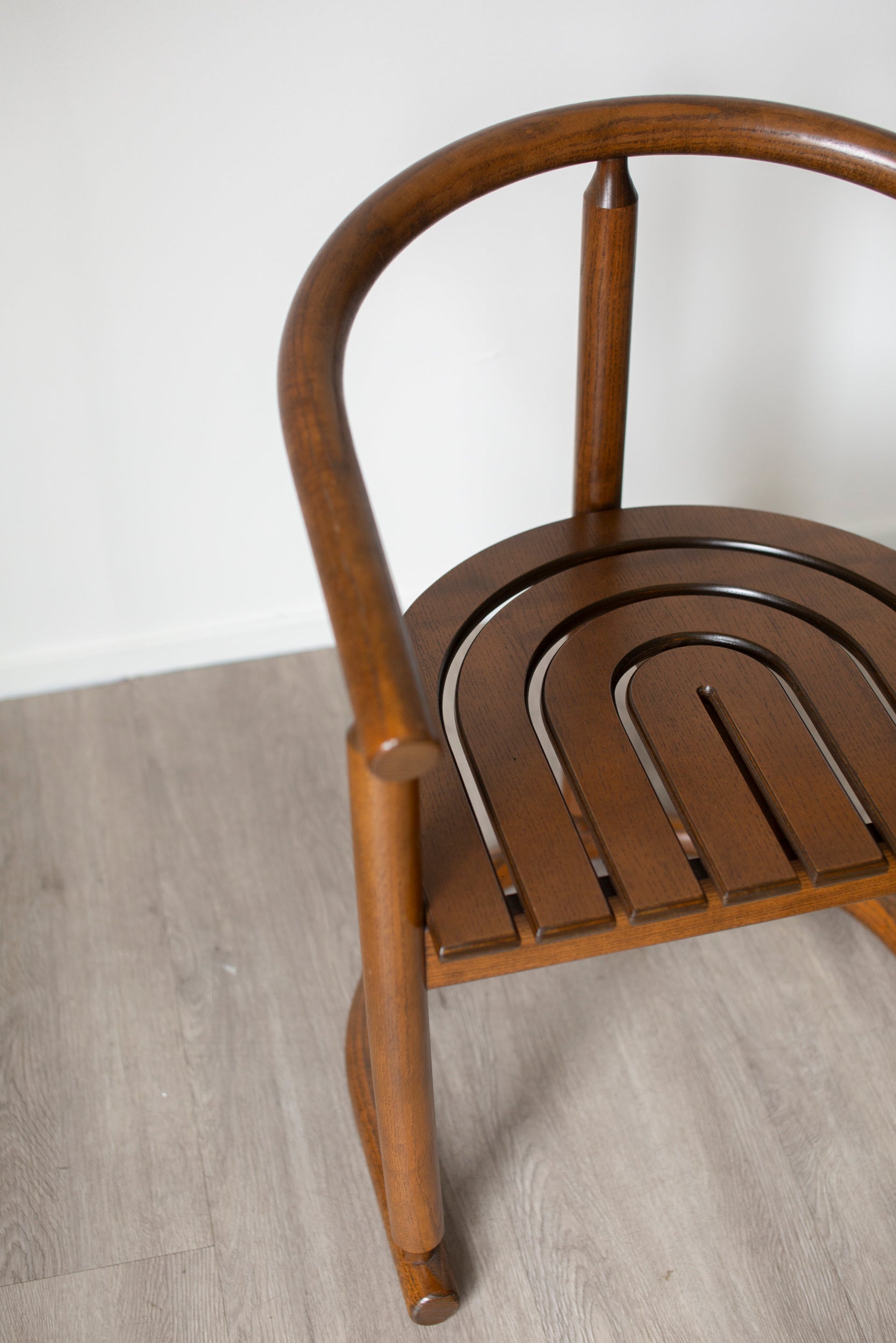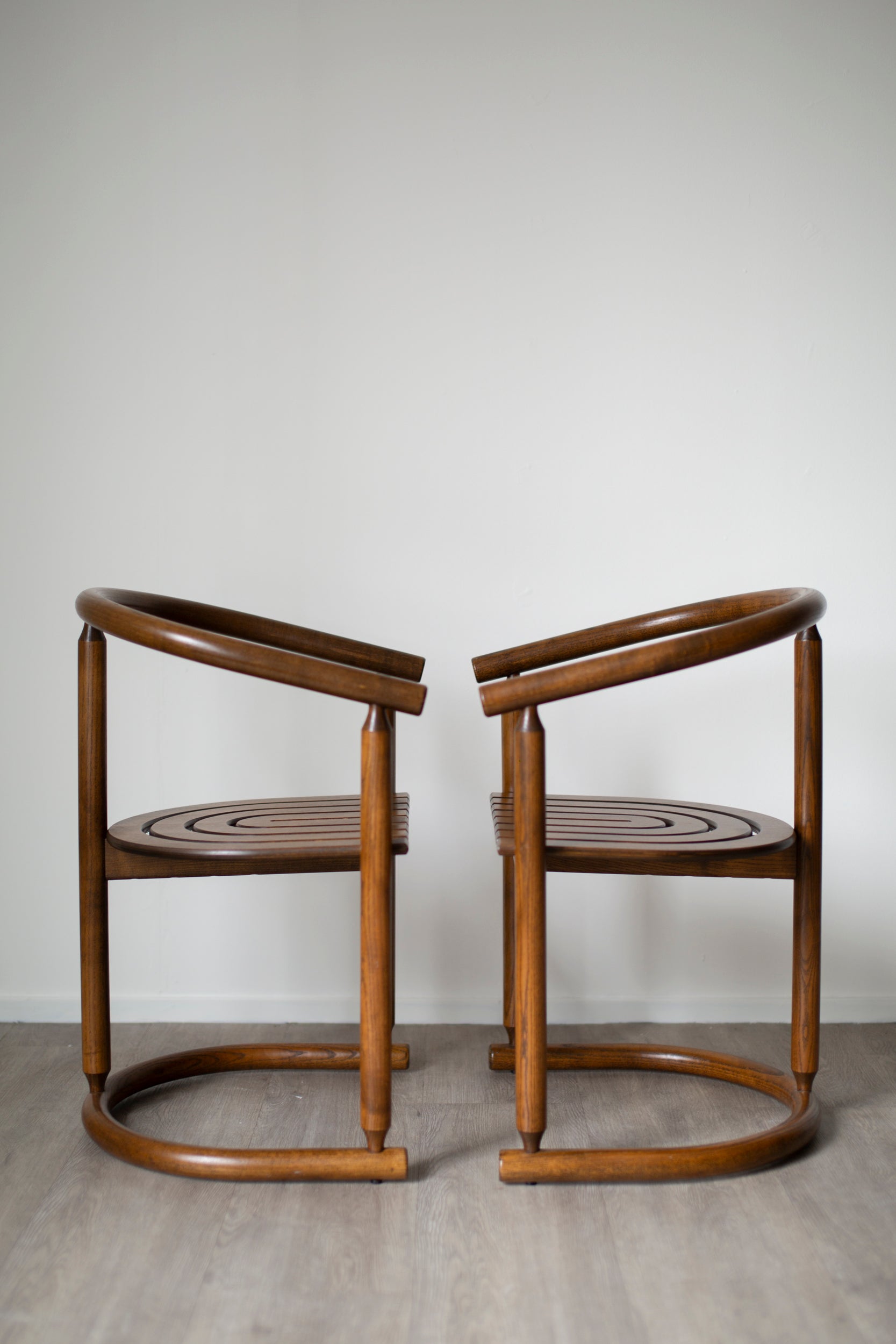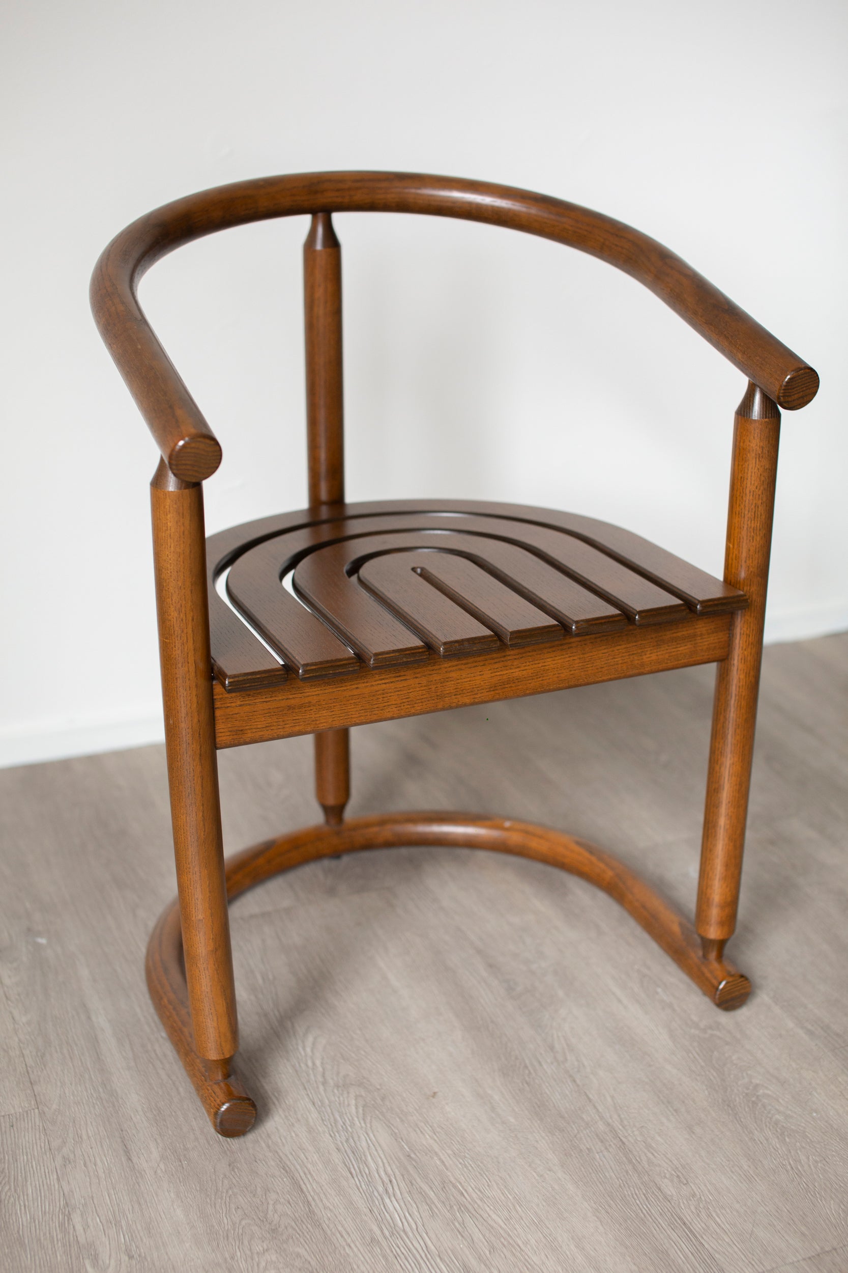 Amazing rare German chair. Rainbow shaped wooden seat, bent quality wood. Very good vintage condition. Price per chair, 2 available