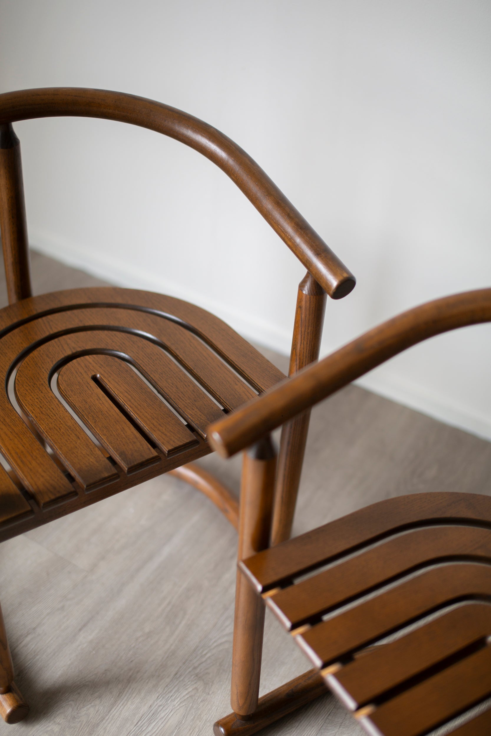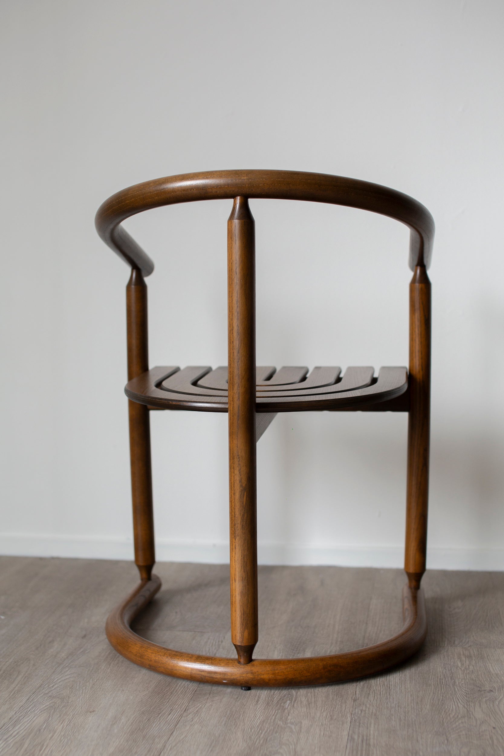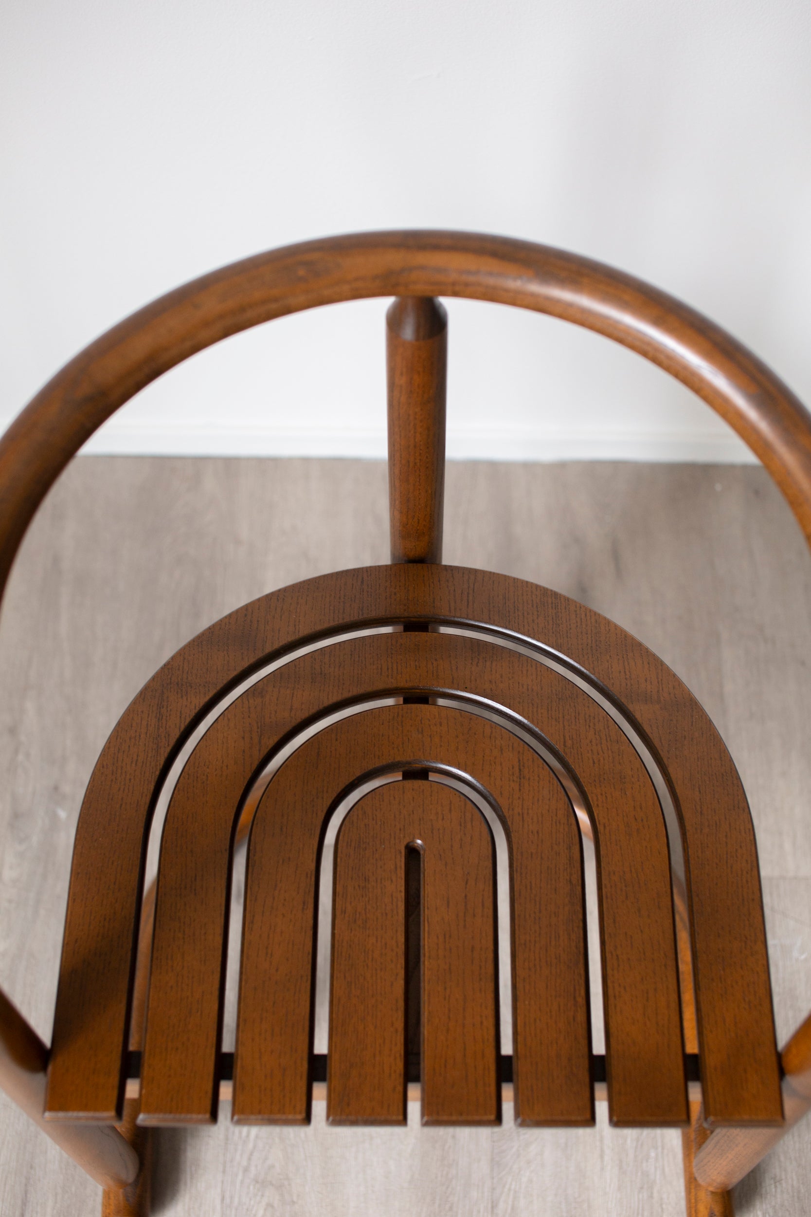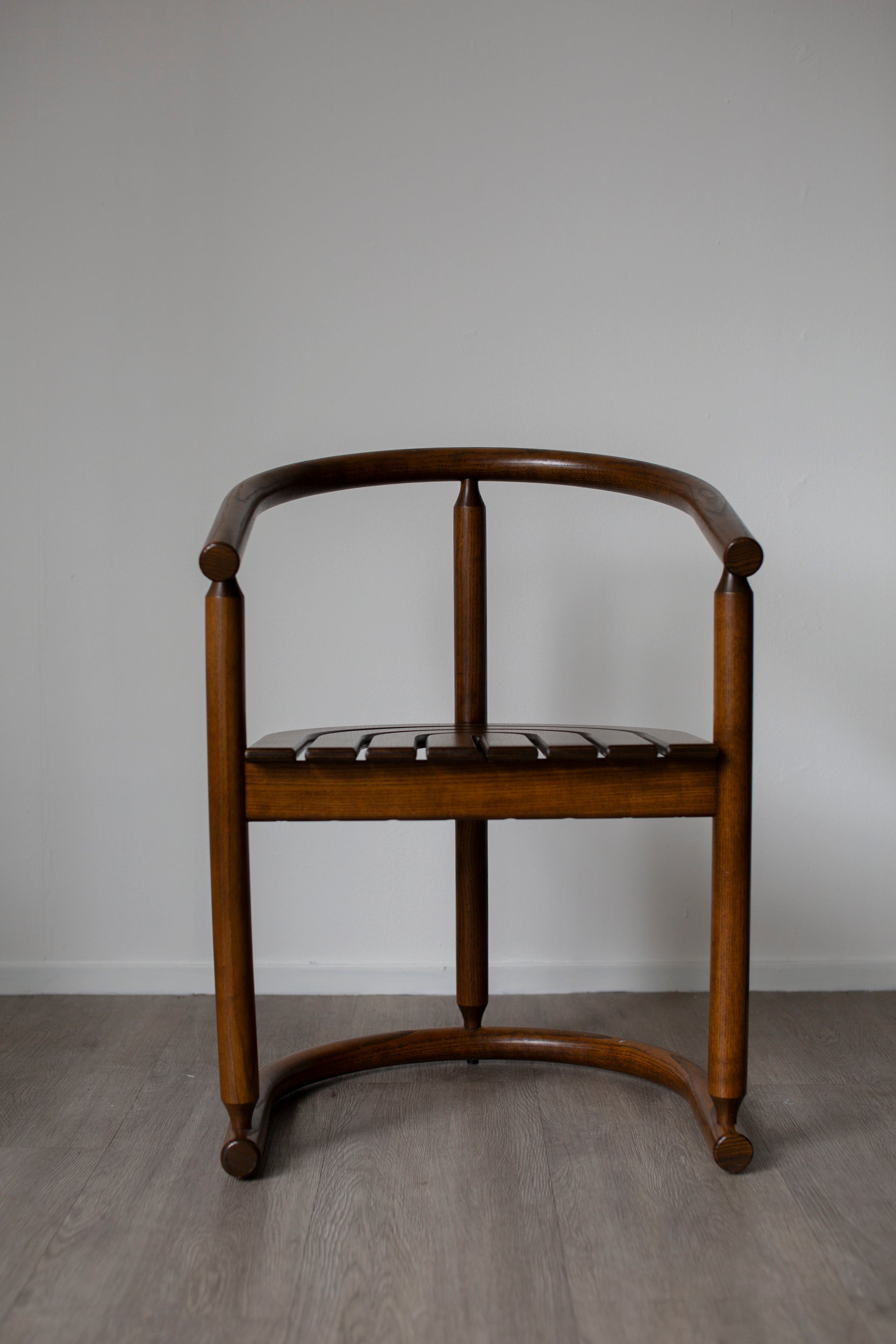 Amazing rare German chair. Rainbow shaped wooden seat, bent quality wood. Very good vintage condition. Price per chair, 2 available