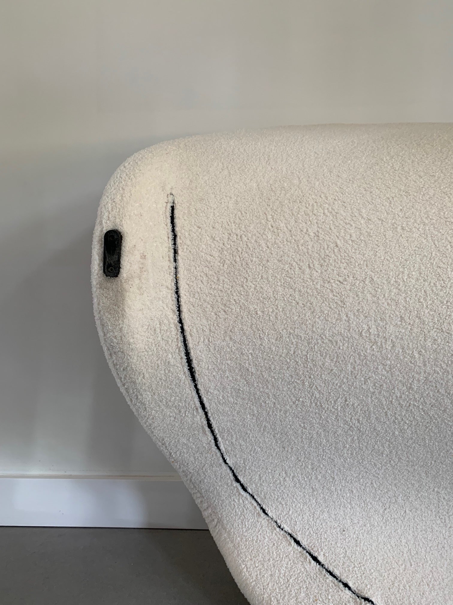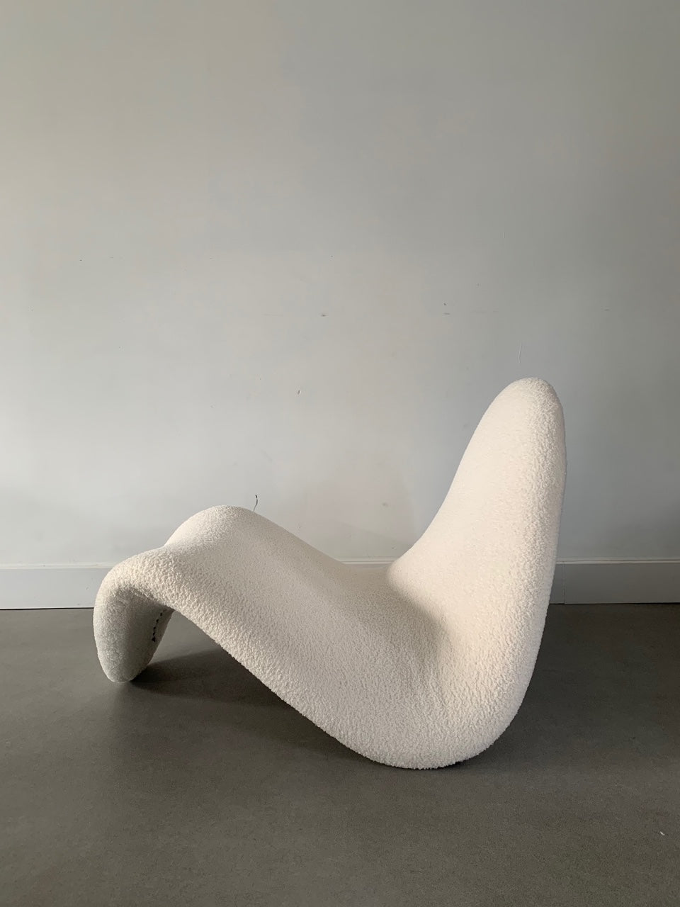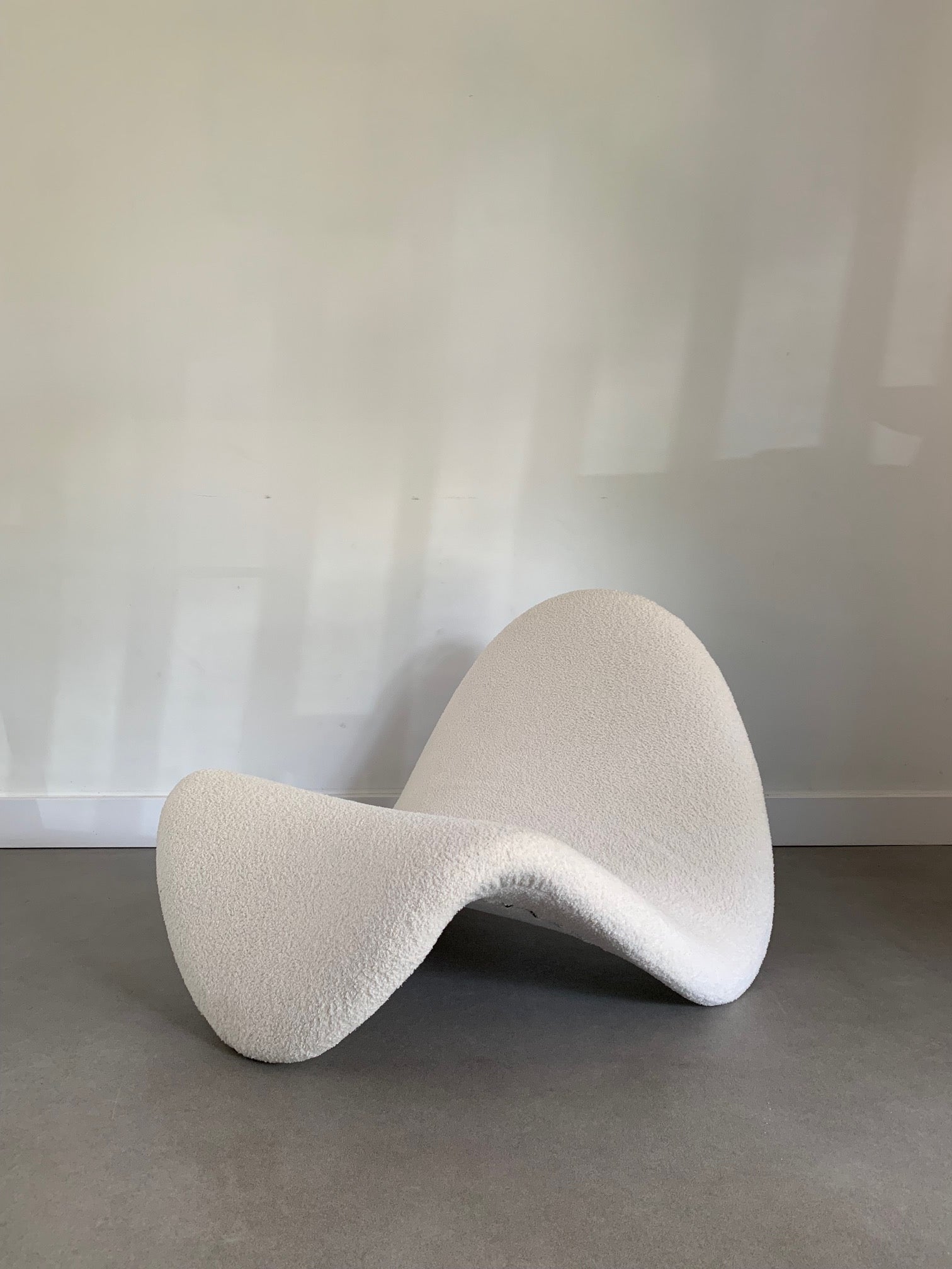 Well hello curvy beauty! This vintage Artifort Tongue has a new dress (and some foam), the old dress was complete torn so why no go with this beautiful and soft doodle bouclé by Buvetex? This fabric has an easy clean finish. For me this is a sculpture and not a chair, but as you know about Artifort, all the chairs have great comfort.