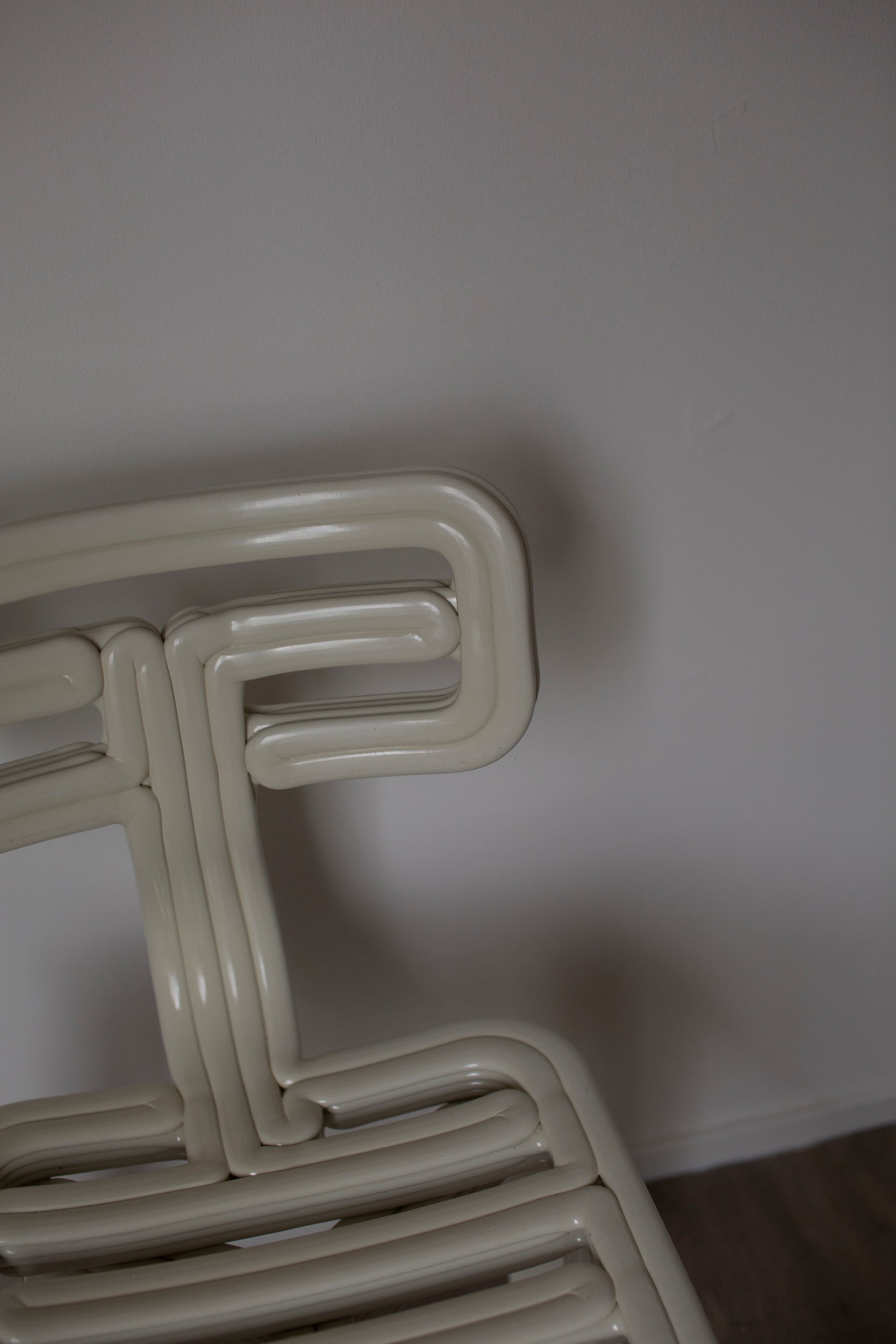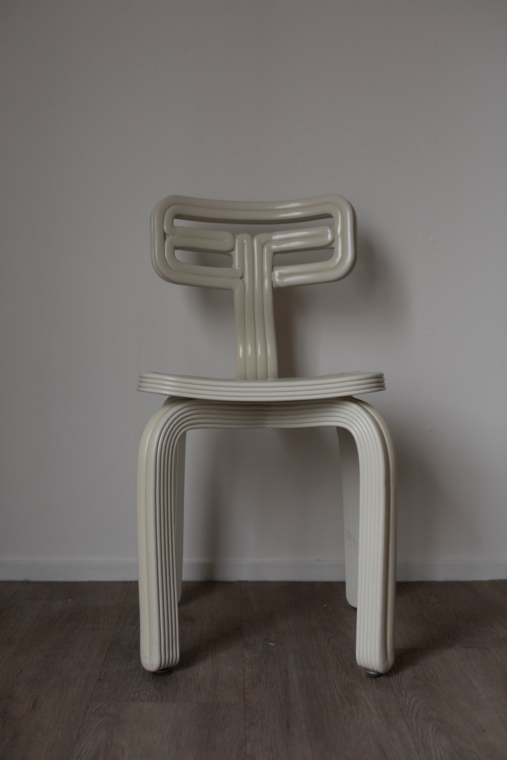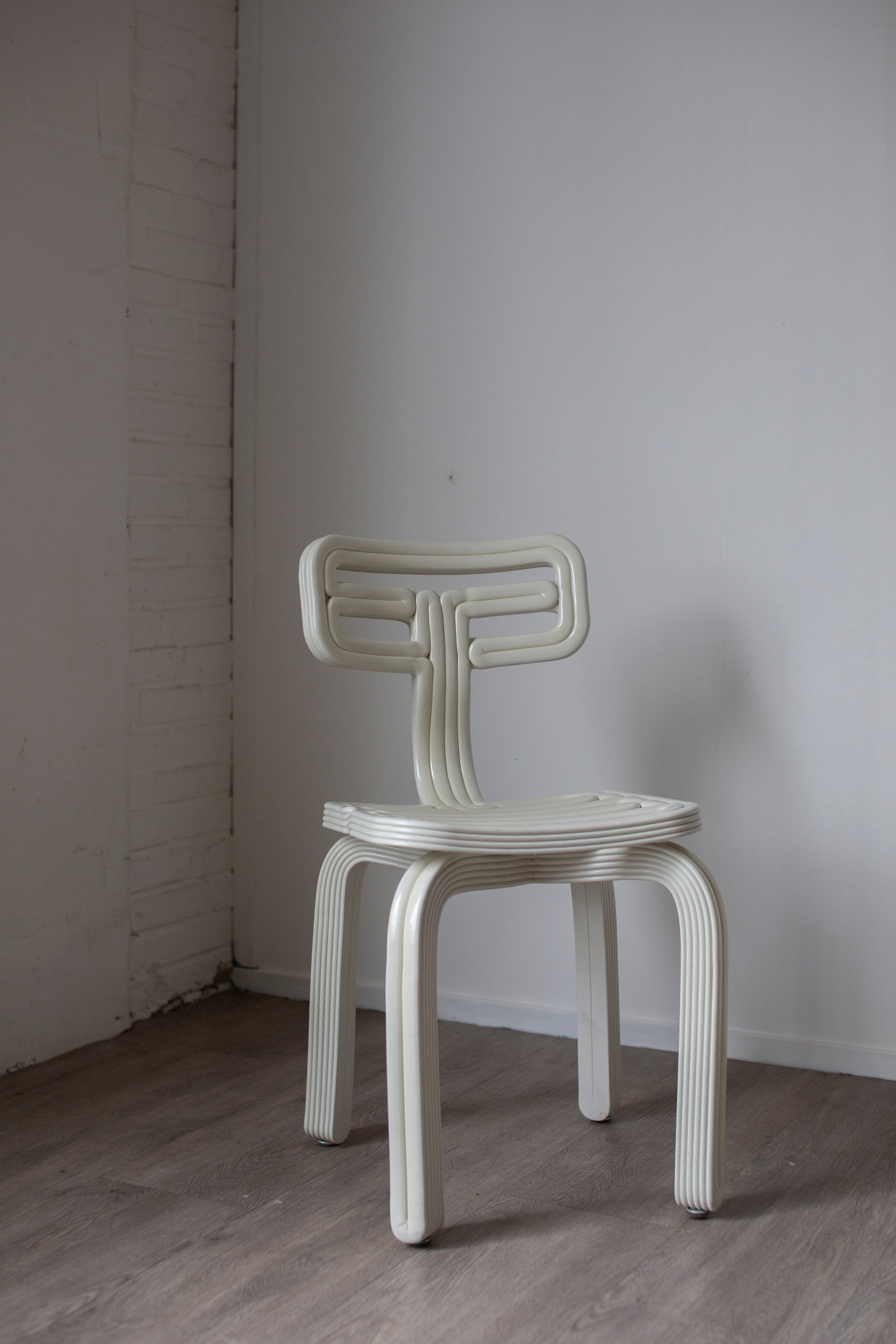 Designed in 2012 and gaining popularity every year and being held in de permanent collection of the Vitra design museum. The Chubby chair by Dutch Dirk van der Kooij is a playful 3D printed chair made from recycled plastic. Colour: buttermilk. Weight: 10 kilo.