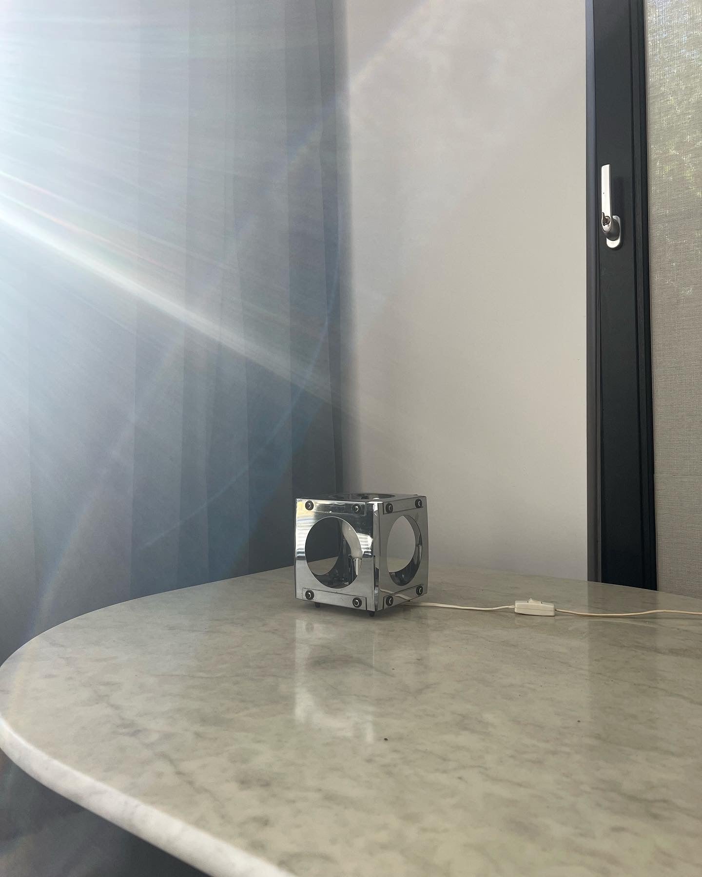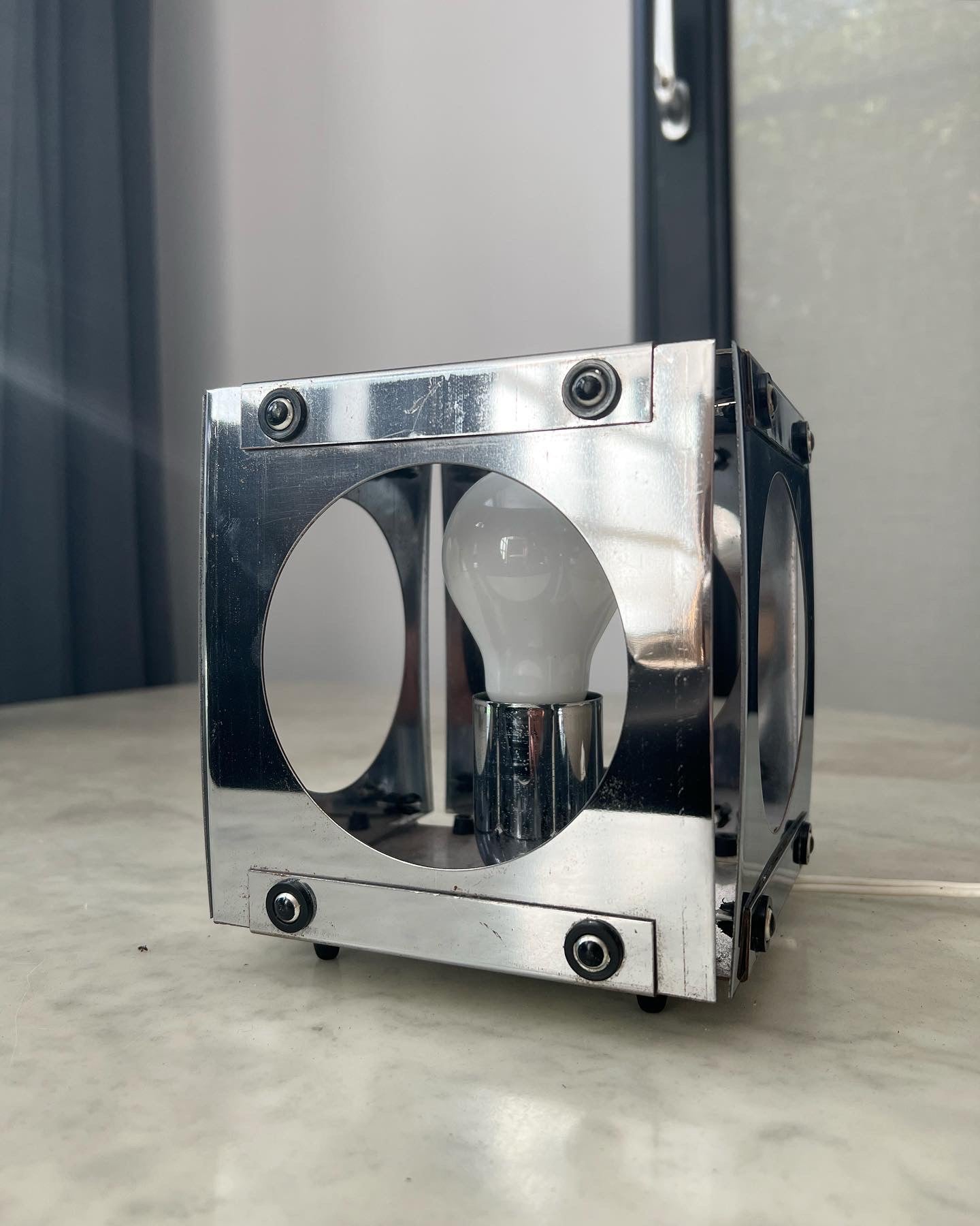Cool chrome lamp by Italian designer Goffredo Reggiani. Fitting perfectly into todays chrome trend. Mix it with marble or wood and you have your perfect touch of contemporary and timeless design.