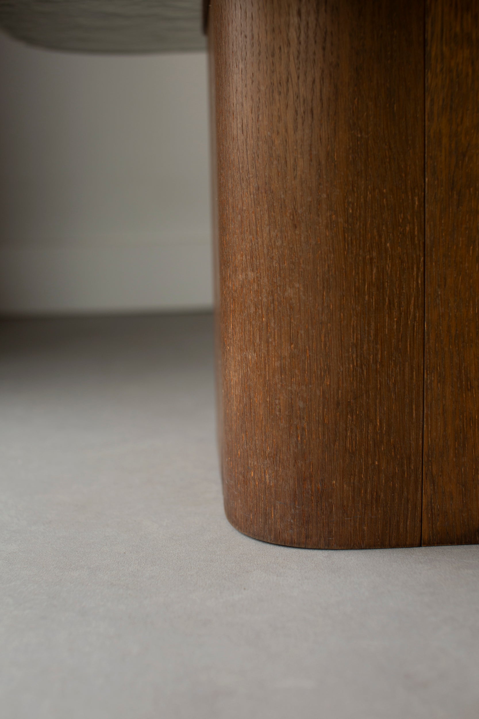 Take a bold risk with our heavy glass table on a sturdy wooden nut coloured pedestal. Achieve a sleek, modern look while also enjoying the stability and durability it offers. Add this statement piece to your space and elevate your style game.