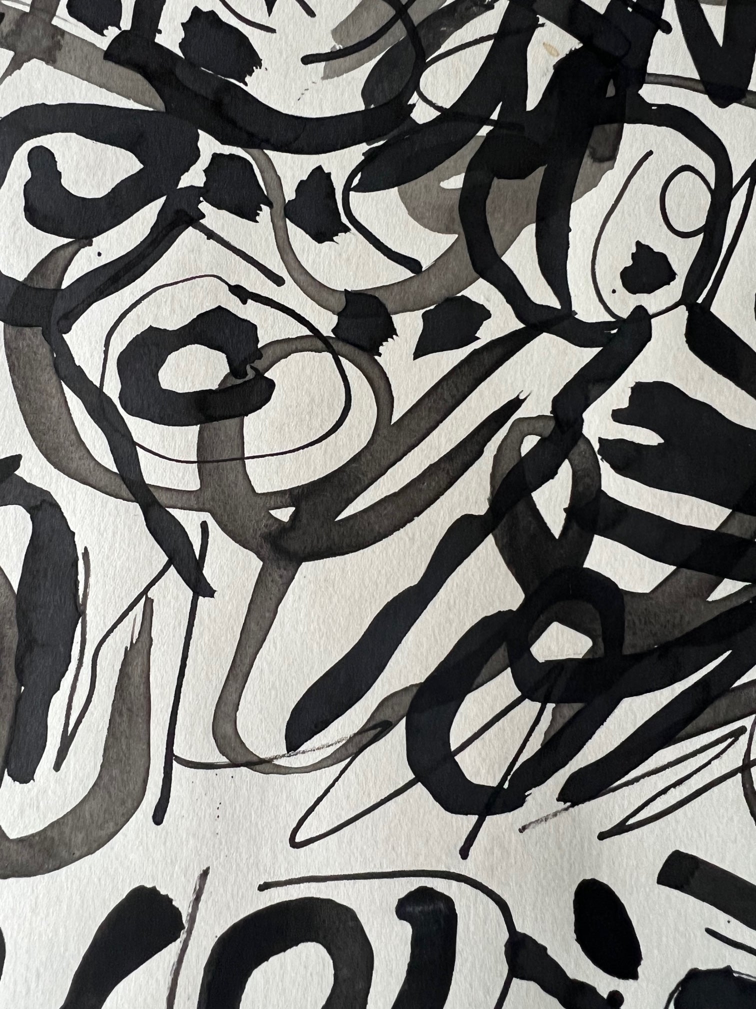 This is probably a ink-study drawing. This pieces is most likely dated somewhere between the the 70's and 80's.