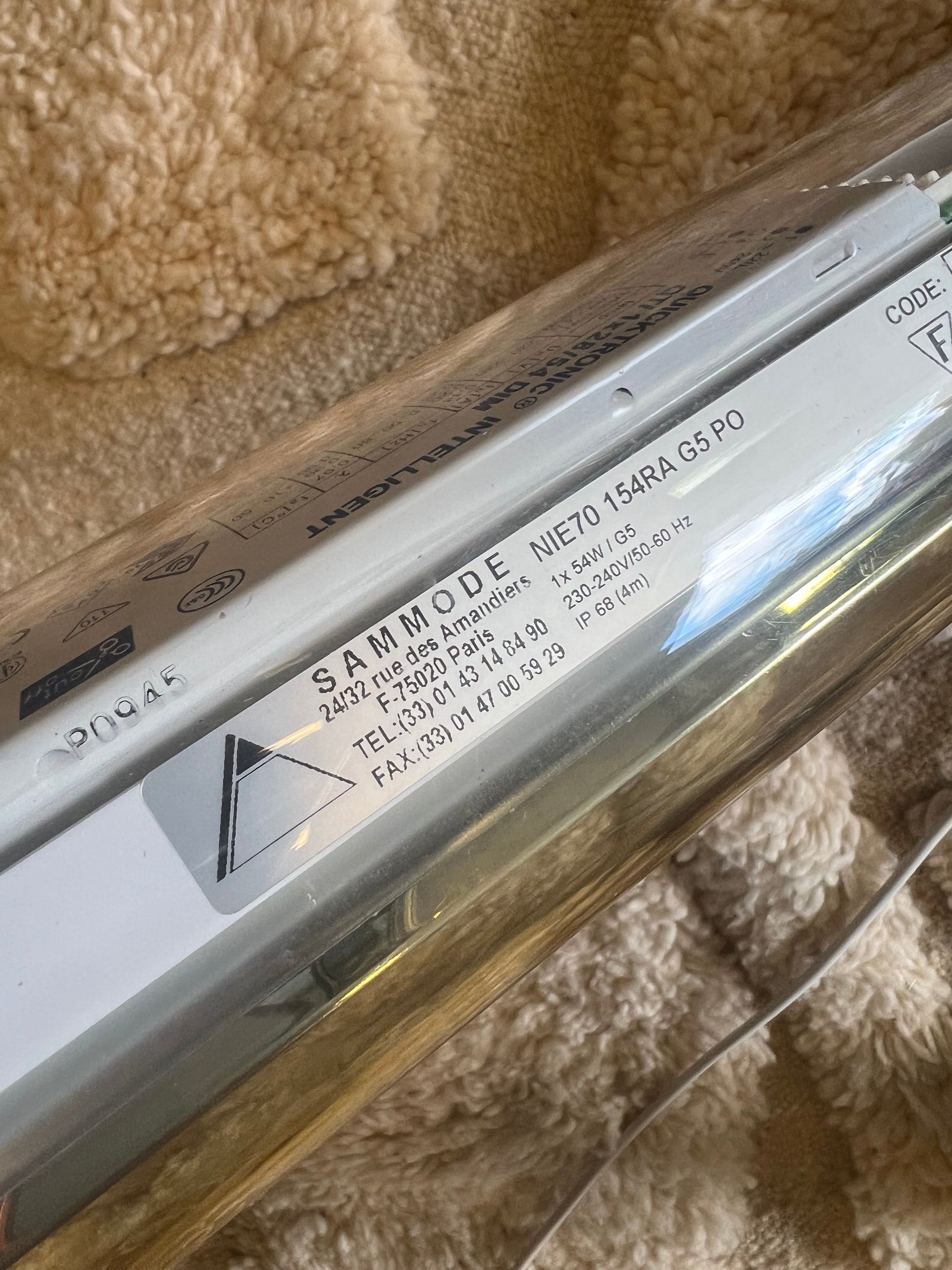 This beautiful light fixture comes from a very nice gallery store. Sammode, a French architectural lighting company, still offers a very wide range of light tubes. I love the simplicity of this pre-owned one.