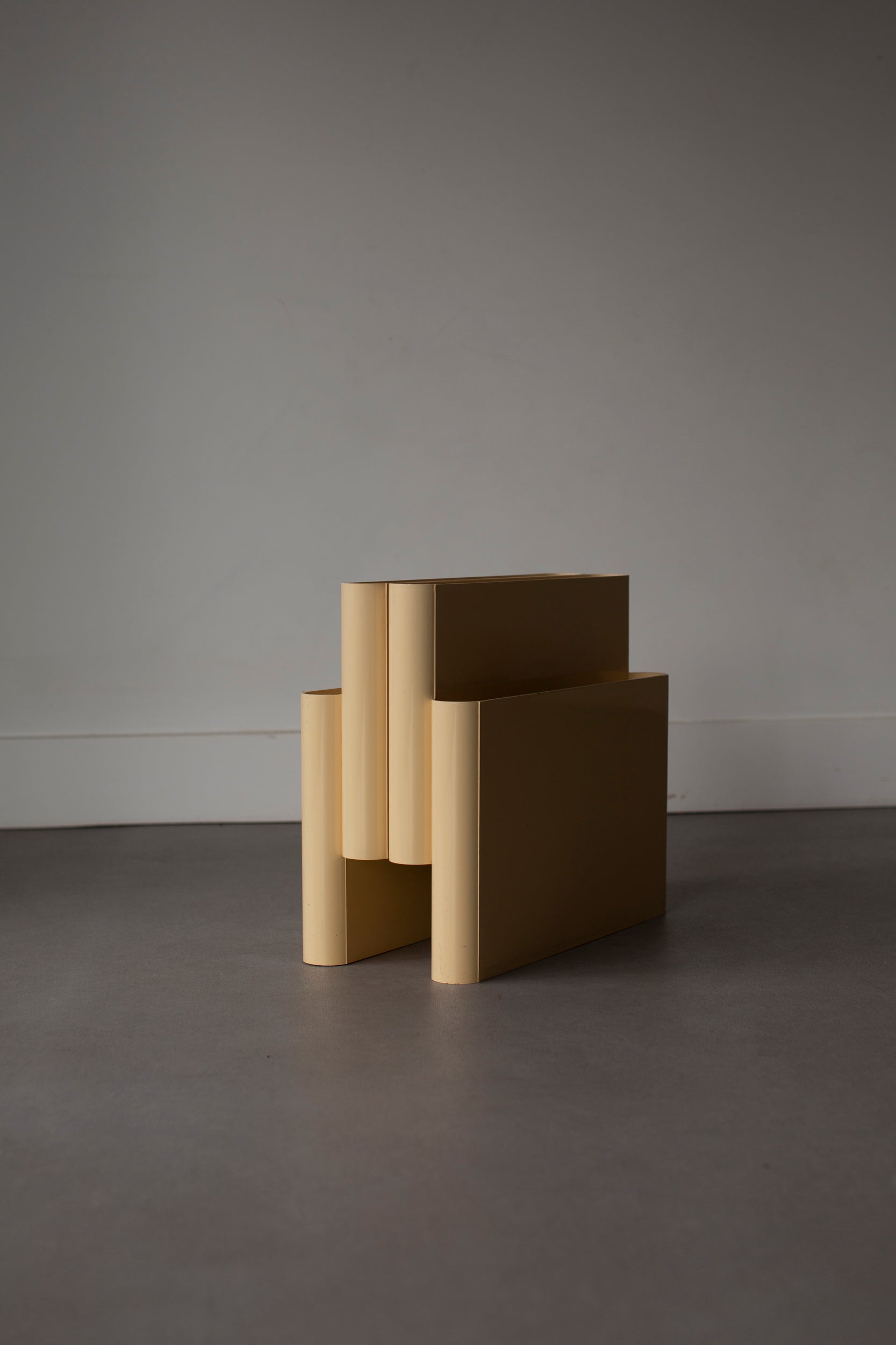 Expertly designed by renowned designer Giotto Stoppino, this magazine rack is both stylish and functional. Keep your magazines organized and easily accessible with this sleek and modern piece. Made with high-quality materials, it's a durable addition to any room. Increase the tidiness and aesthetic of your space with this elegant magazine rack.
