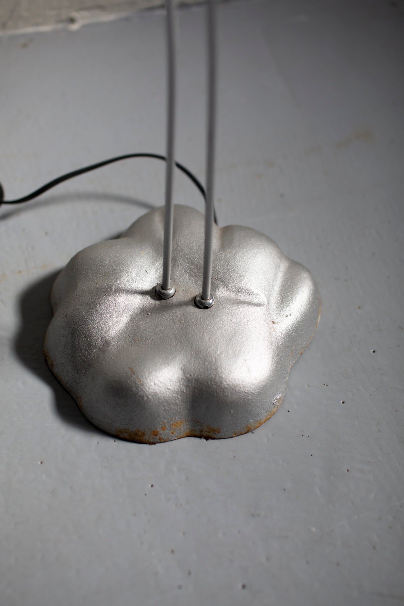 This floor lamp gives me subtle Japanse vibes. It has a opaline shade steel wires and a concrete base.
