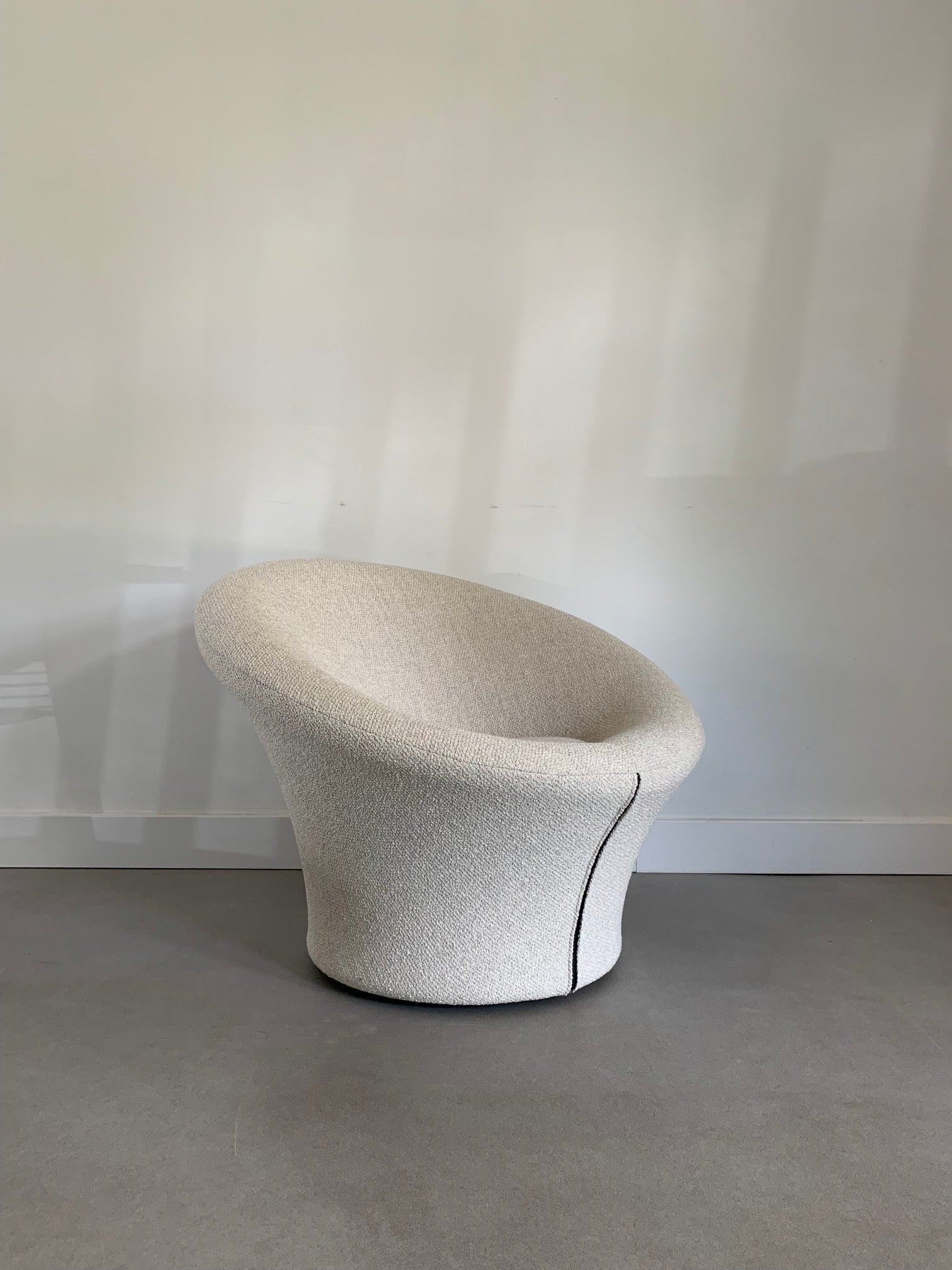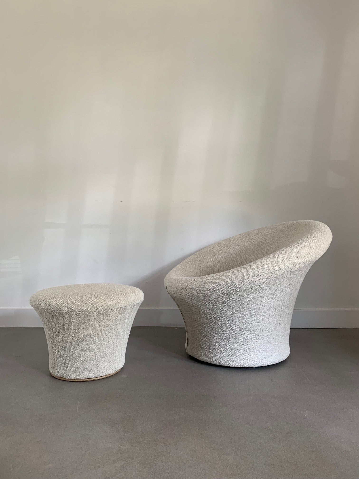 Perfectly refurbished mushroom-chair with pouf. We used high quality Ploeg-fabric (Monza) for this project.