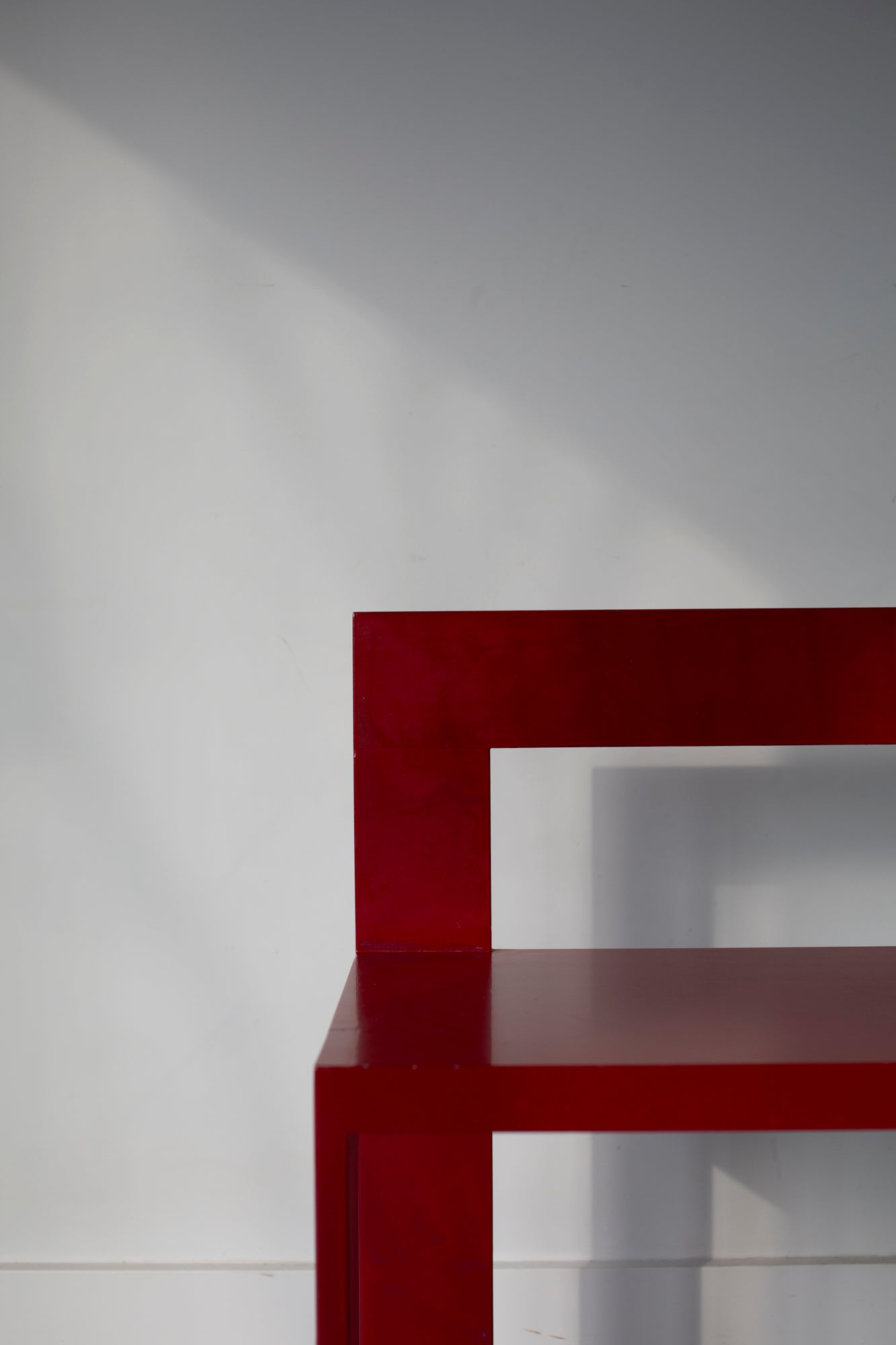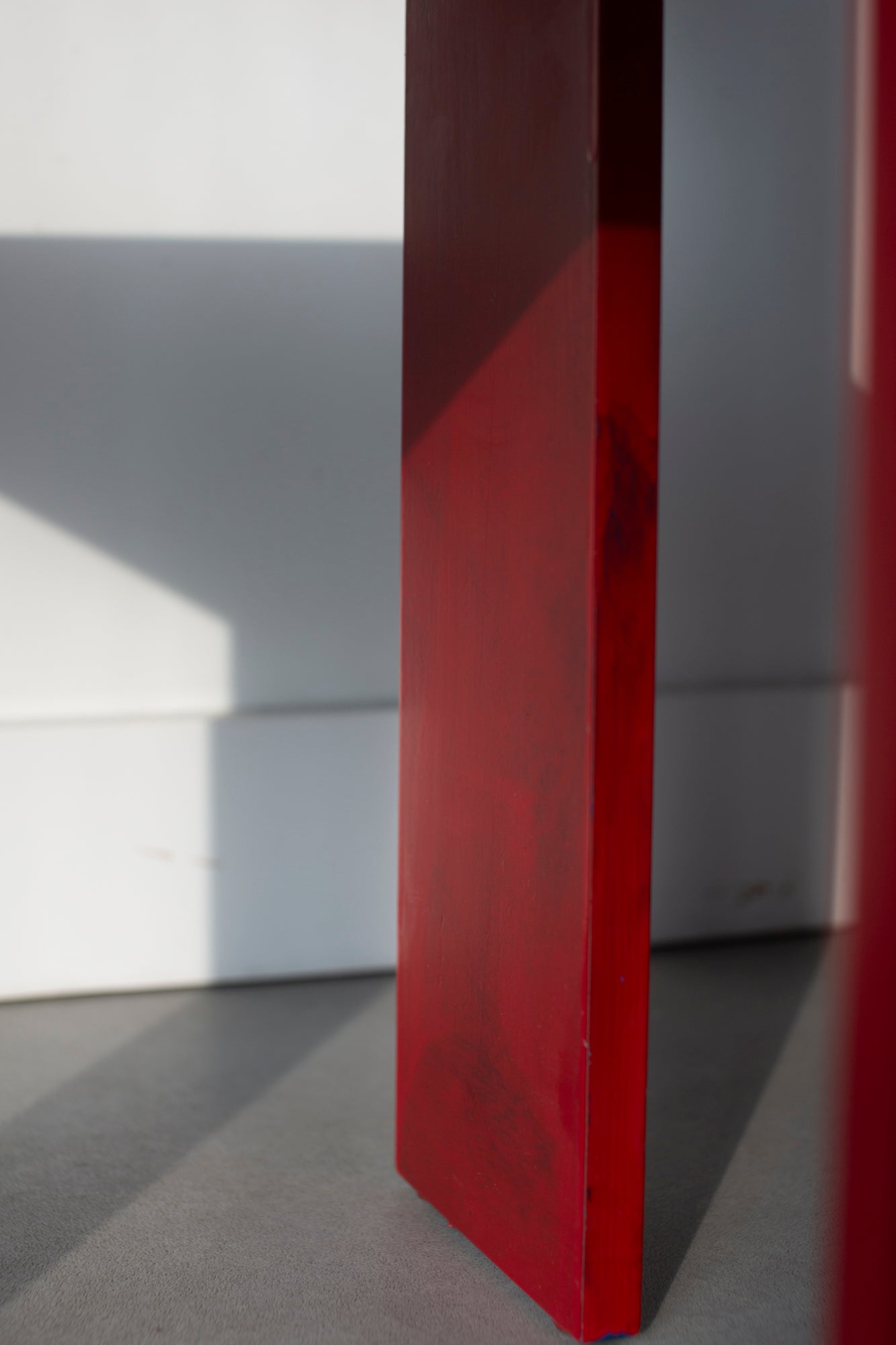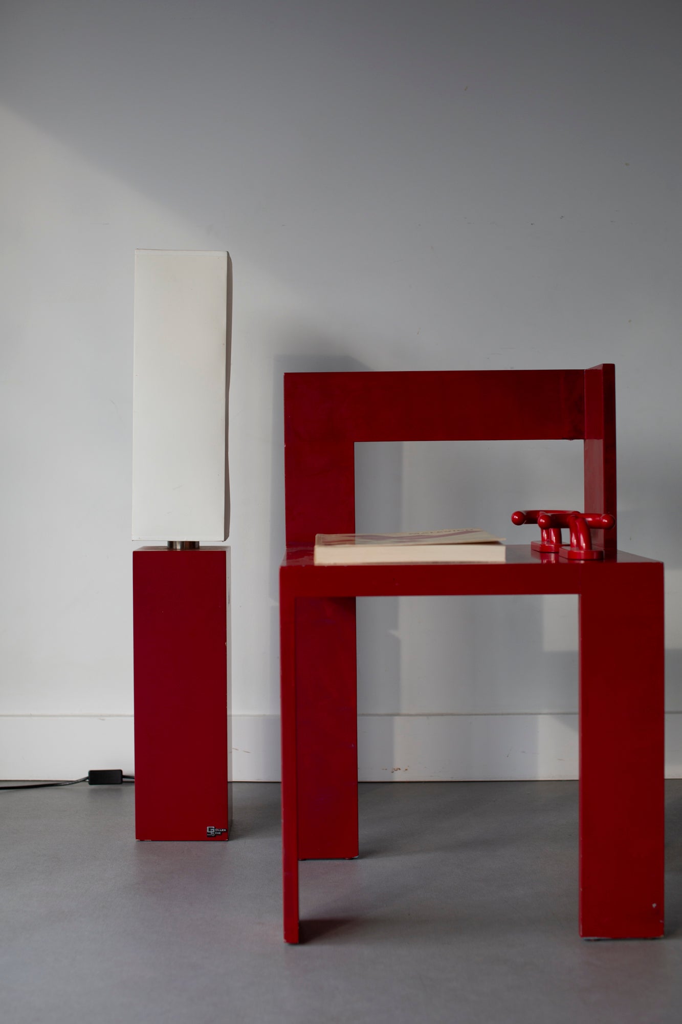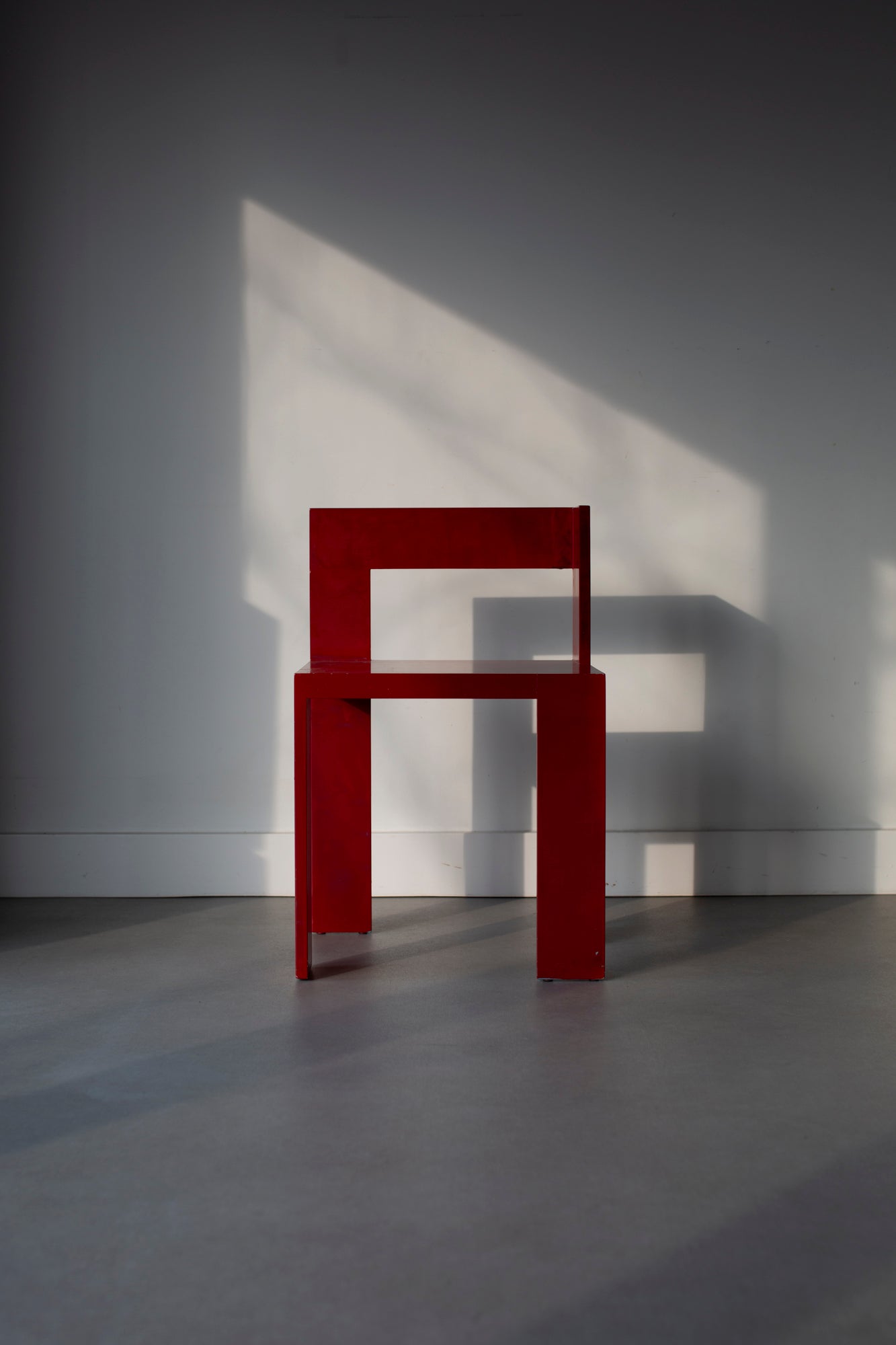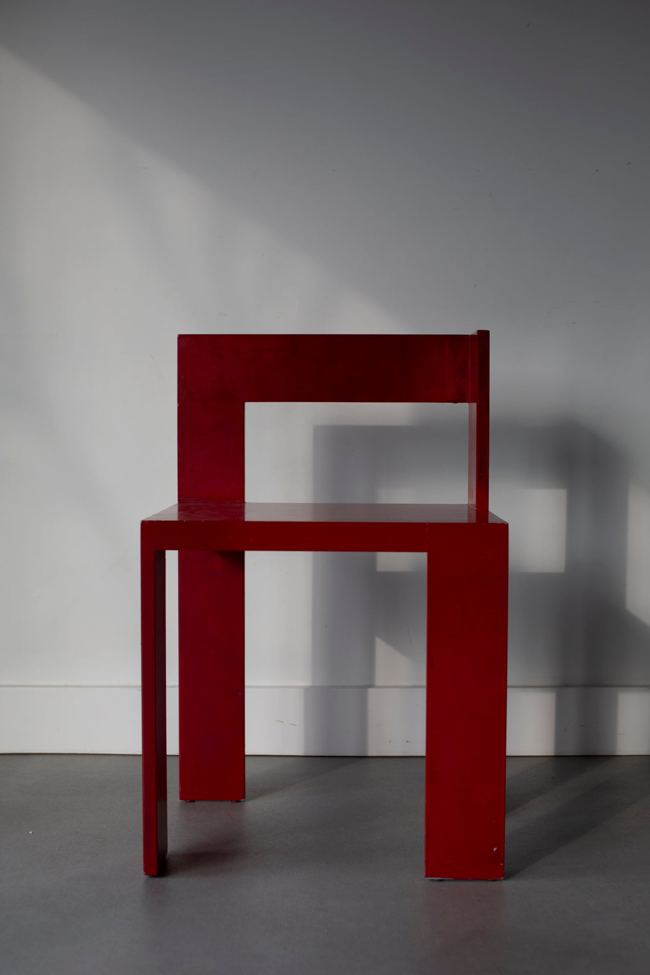 Beautiful sturdy accent chair by an unknown designer. I fell in love with the perfect shade of red on this chair, but the paint job on this chair is certainly not perfect, please have a good look at the pictures.
