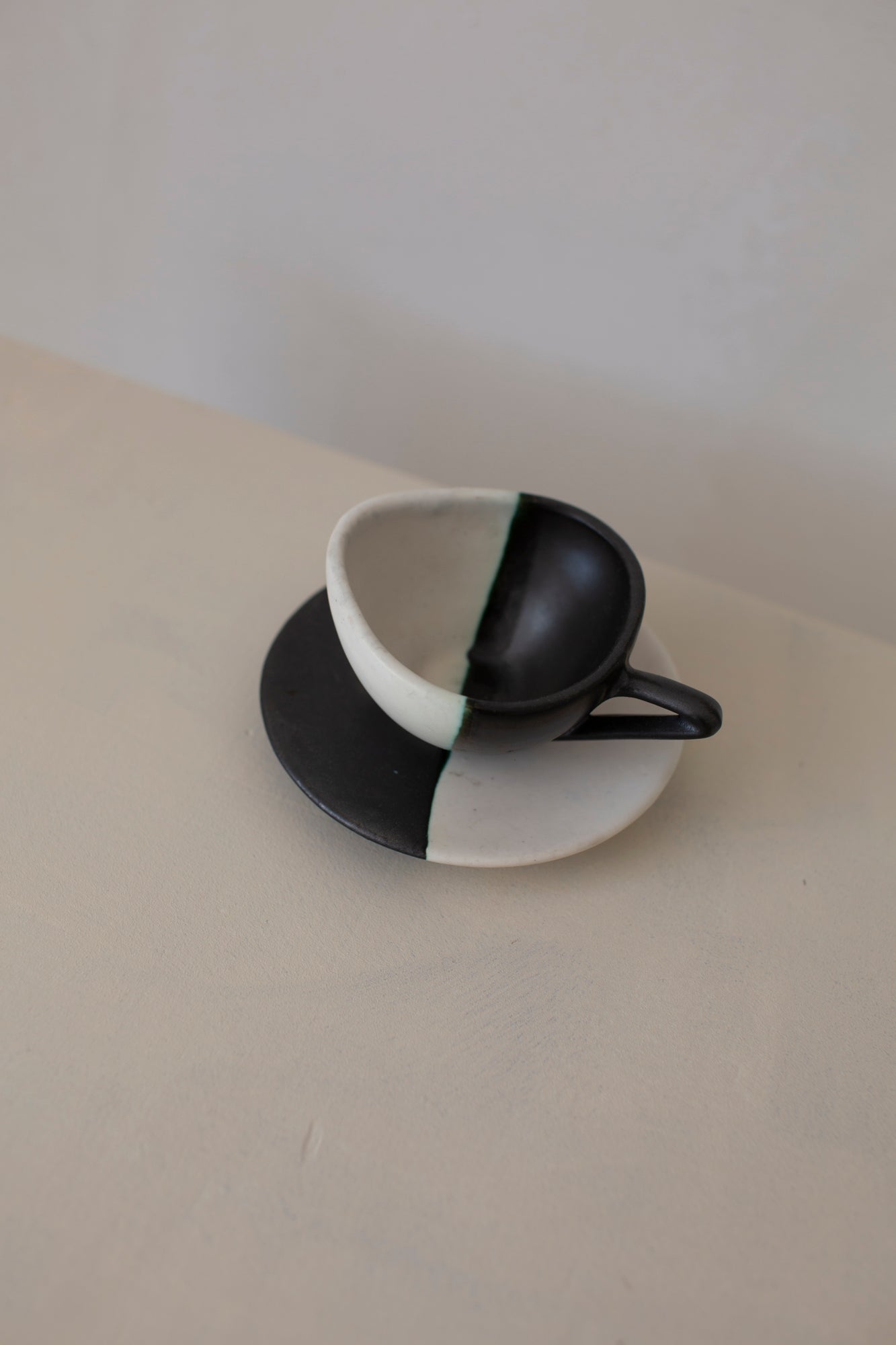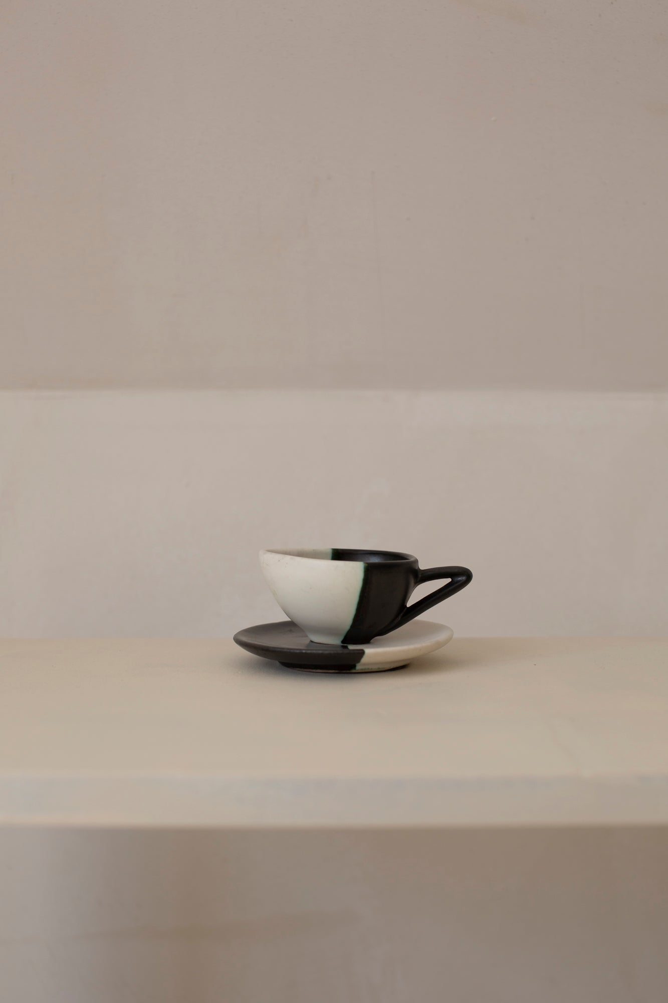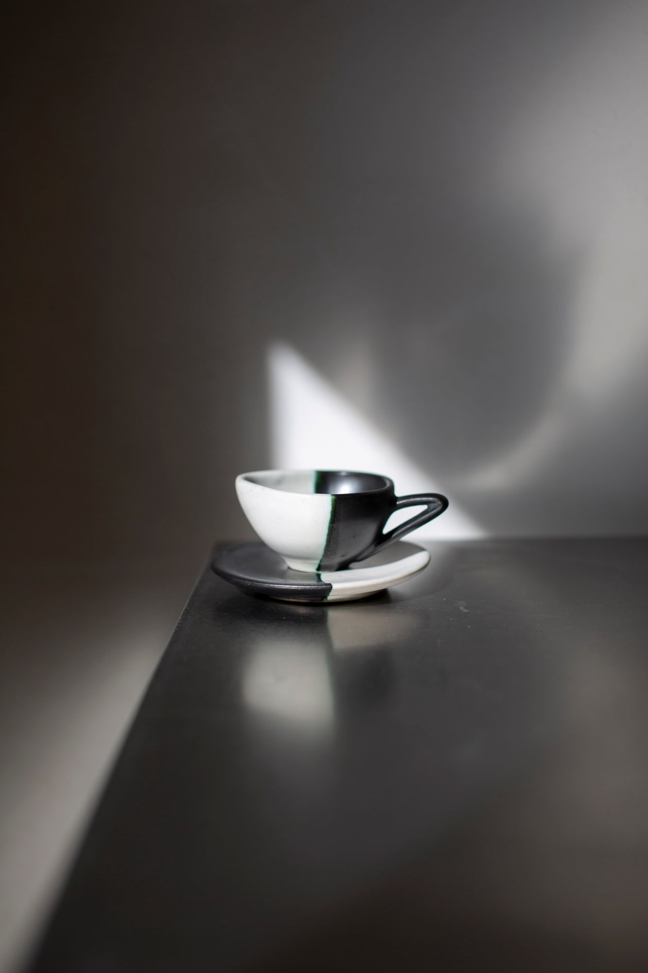 This sculptural black and white ceramic espresso cup combines artistic design with everyday functionality. Its striking monochrome pattern adds a modern touch to your coffee ritual while the durable ceramic keeps your espresso perfectly hot. Ergonomically crafted for comfortable handling, this cup elevates the simple pleasure of sipping espresso into a refined experience.