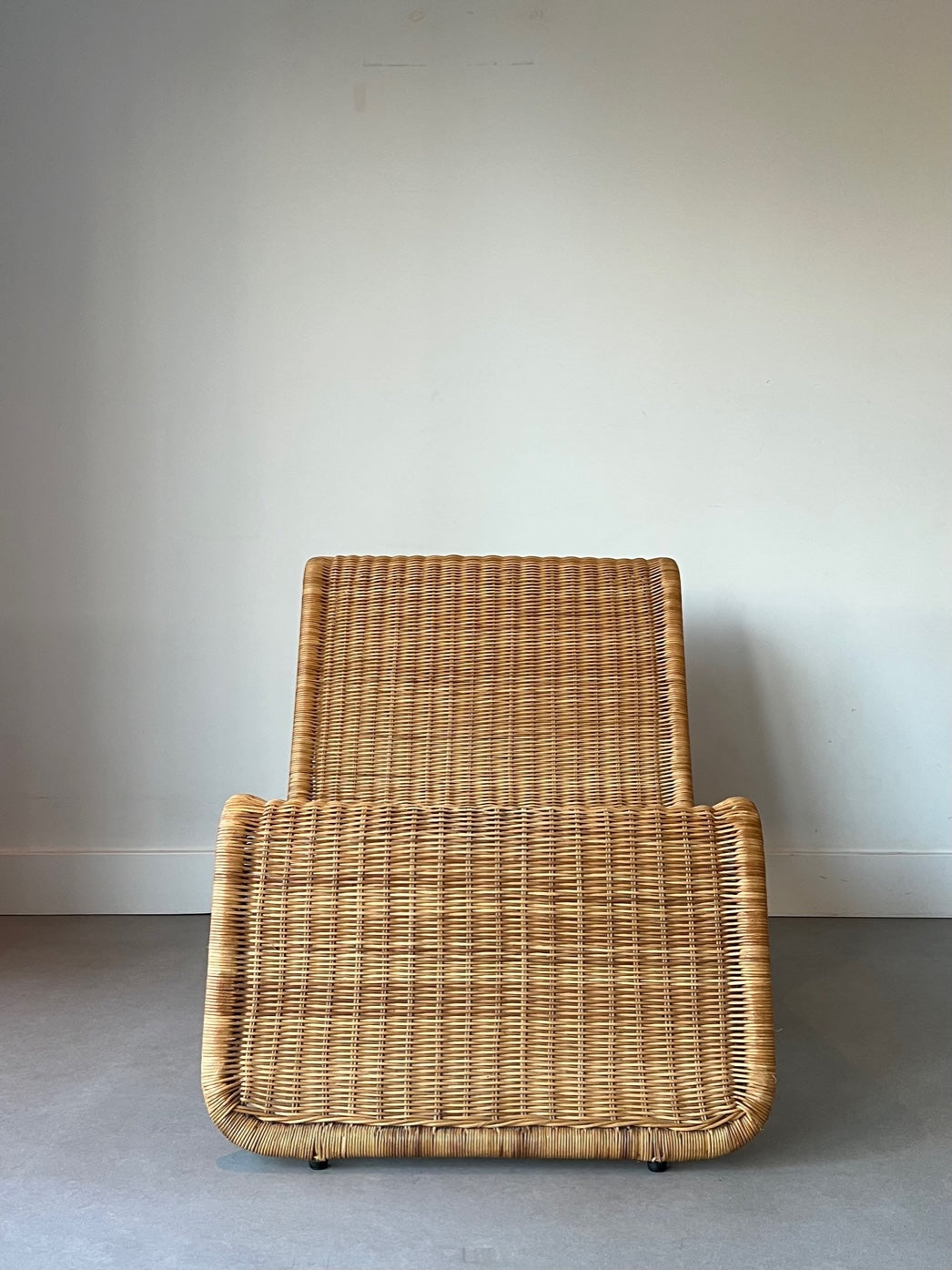 This stunning and very comfortable rattan lounge chair is called Hestra and was produced by Ikea around the same time (1982) as the of design of Tito Agnoli, the P3, made by Pierantonio Bonacina. This is more however is more sloping chair. The chair is made of a metal frame with woven wicker and was originally made for in- and outside use. It is in a good condition with some marks from age and use but no breaks in the wicker.