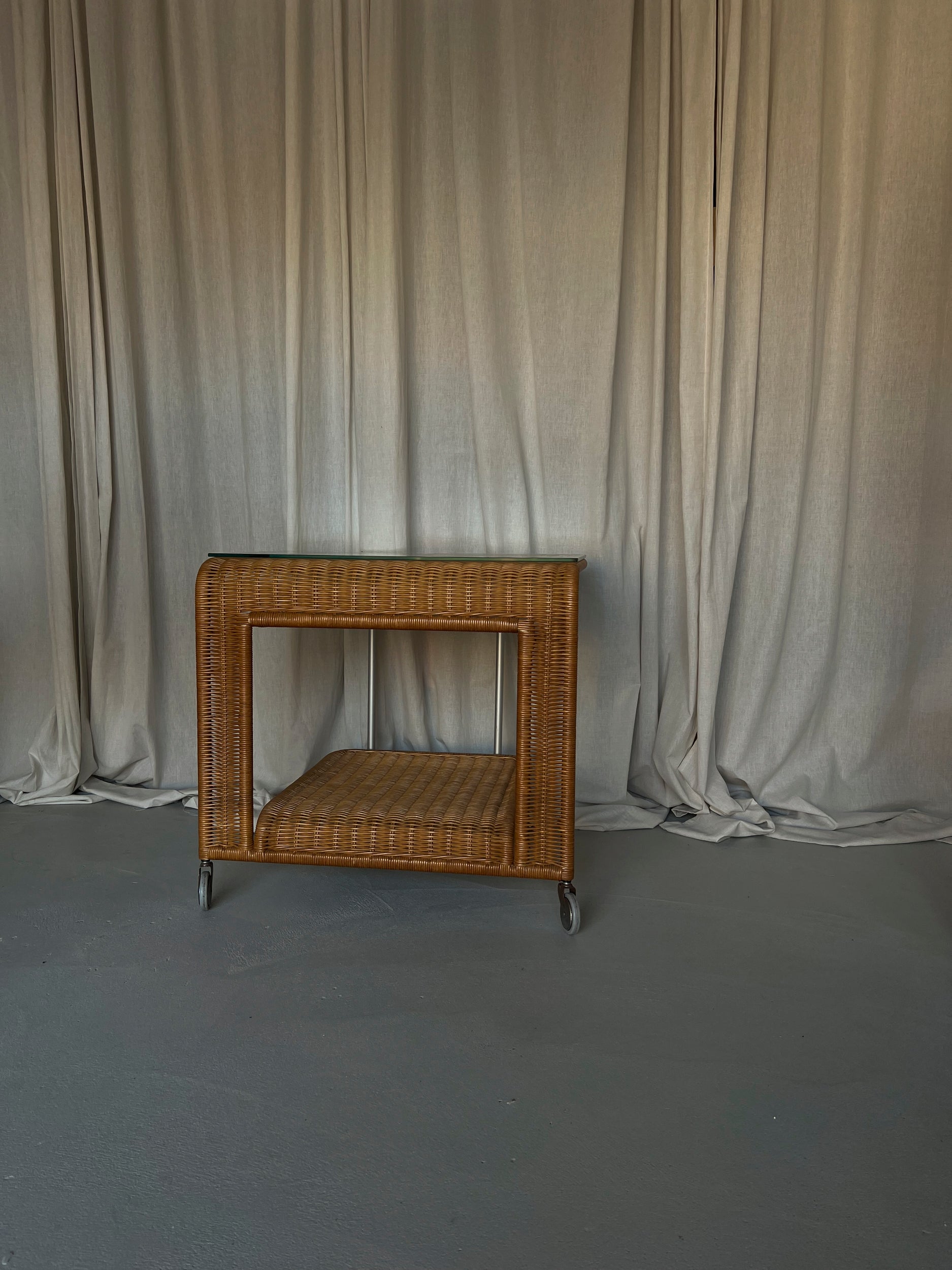 Again a pre-owned item I cannot trace back to a designer. But the perfect rattan combined with the shape made me want to include this in my collection. It's conveniently sized, flexible because of the wheels and simple shaped.